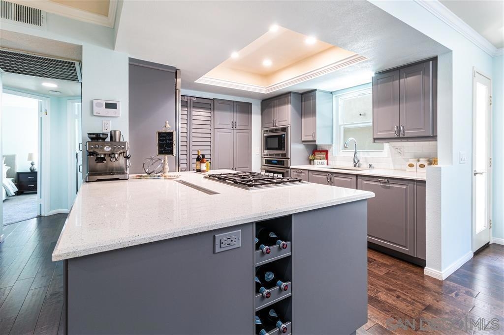 This beautiful residence is nestled in the heart of vibrant Hillcrest and conveys with 2 private attached parking garages that fit 3 cars (with parking at a premium this is one of a kind). The chef's kitchen comes equipped with Sub-Zero and Thermador appliances, including a wine fridge and has been recently updated. A gas fireplace in the living room, large bedrooms, engineered hardwood floors, dual pane windows, central forced air and LG washer/dryer, this property will impress.