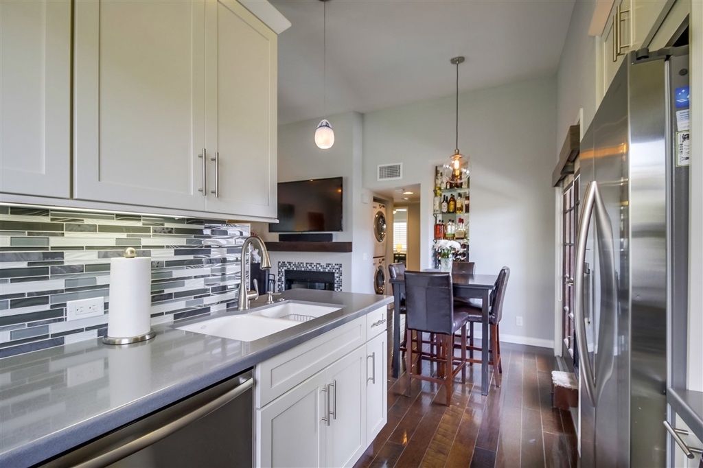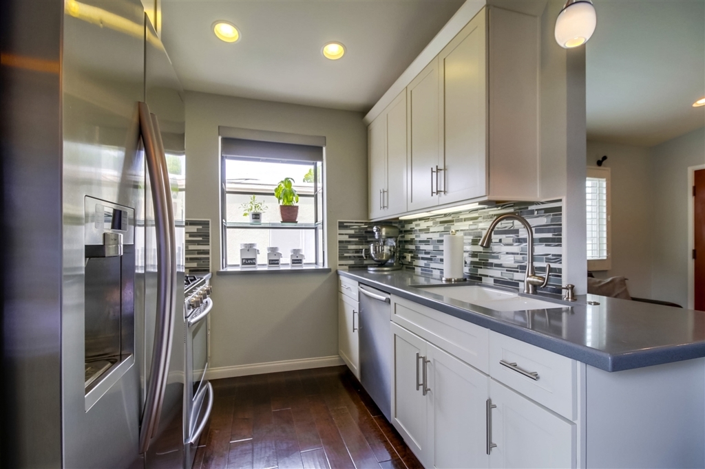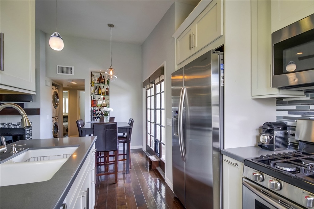 This is the Hillcrest turn-key condo that you've been waiting for! Beautifully remodeled with engineered maple wood floors, Milgard dual pane windows, Kraftmade maple cabinets with soft close and pull outs, Silestone quartz countertops, under cabinet lighting, stainless steel appliances, glass and porcelain tile backsplash, Damner wood shutters and custom shades, central A/C w/ Nest thermostat & smoke detector, new furnace and ductwork, modern ceiling fans, recessed lighting, and more! (SEE SUPPLEMENT) Other features include raised ceilings, wood burning fireplace with decorative tiles, garden window, full size front loading stackable washer/dryer, custom light fixtures, light and bright balcony with French doors, detached 1 car garage with ample storage space, and 1 additional driveway parking space, all within a secured complex. Central location, just steps to shopping, Farmer's Market, Starbucks, grocery, fitness, and some of San Diego's best restaurants.. Neighborhoods: Hillcrest Complex Features: , Equipment: Garage Door Opener, Range/Oven Other Fees: 0 Sewer: Sewer Connected Topography: LL