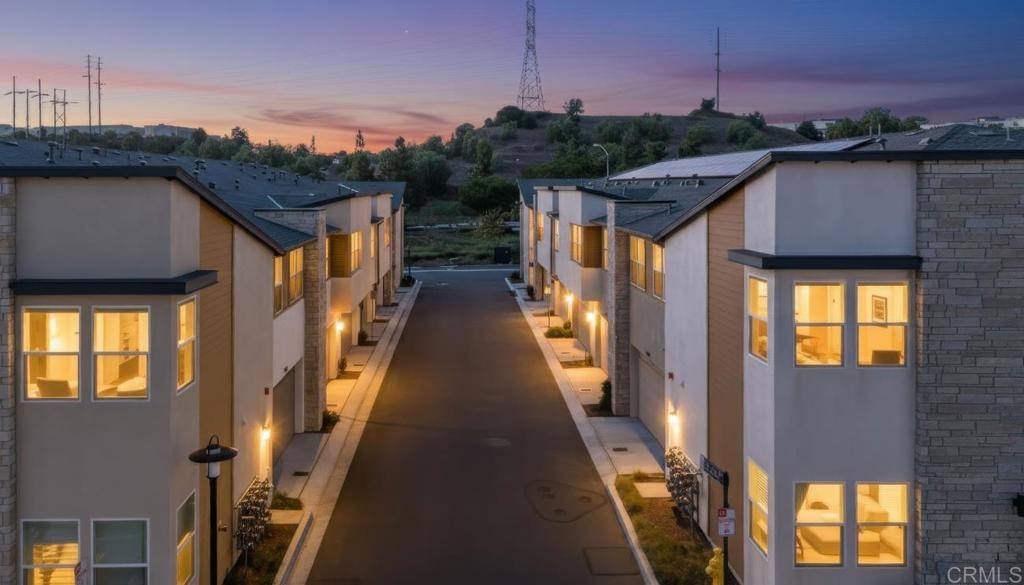 Better than new! Welcome to a highly upgraded townhome in the sought-after 3Roots community in Sorrento Mesa, featuring owned solar, smart home technology, and modern finishes throughout. Ideally situated within minutes of the Sorrento Valley tech corridor and tucked away from busy streets, the home shows like a model, with modern oak-wood-style flooring, custom blinds, and energy-efficient appliances, all with serene mountain views. The flexible entry-level bedroom with a full en-suite bath is ideal for guests, a home office, or multigenerational living, with direct access to the upgraded two-car garage complete with epoxy flooring, custom overhead storage, and integrated internet wiring. On the third floor, two additional en-suite bedrooms include a spacious primary suite with beautiful mountain views. Built within one of San Diego's most innovative, eco-conscious communities, 3Roots offers residents access to a state-of-the-art Fit and Rec Center, resort-style pools, spas, cabanas, fire pits, miles of scenic trails, and over 200 acres of preserved open space. Ideally positioned minutes from Sorrento Valley, UTC, and major employers, including Qualcomm, Apple, Illumina, and UC San Diego, with top-rated San Diego schools rounding out the package. Offered furnished or unfurnished, this turnkey home offers effortless living; just bring your suitcase and start enjoying everything this exceptional home has to offer.