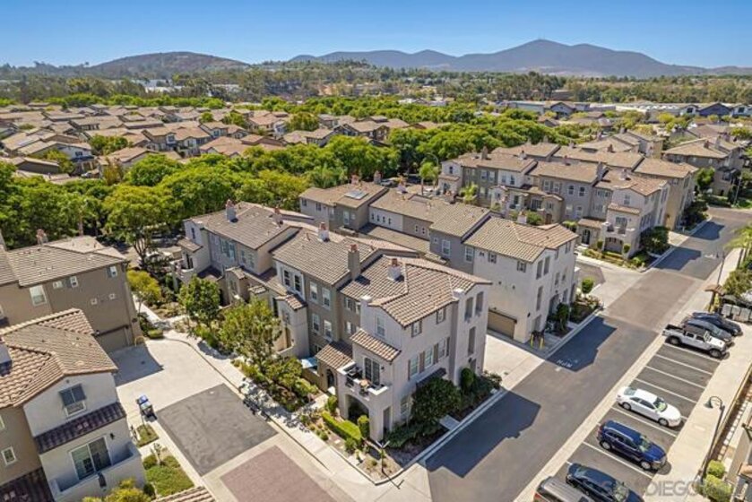 Your NEWLY REMODELED San Moritz Townhome Awaits! The open concept main floor features a spacious modern kitchen with stainless steel appliances & a large island, a large bright living/dining room with elegant fireplace, beautiful stone tile flooring and a private outdoor balcony, perfect for enjoying the evening breeze or firing up the grill. A powder room for guests, as well as a laundry room round out the main floor. Upstairs, the spacious primary suite offers mountain views, a spacious ensuite bath with dual vanity, a walk in closet and a separate office/den space, while the ground floor features private guest suite with ensuite bath, storage, and a two car garage. The community features pool, spa and bbq areas, and is located within close proximity to parks, shopping, restaurants, freeways, and the award winning Poway School District.