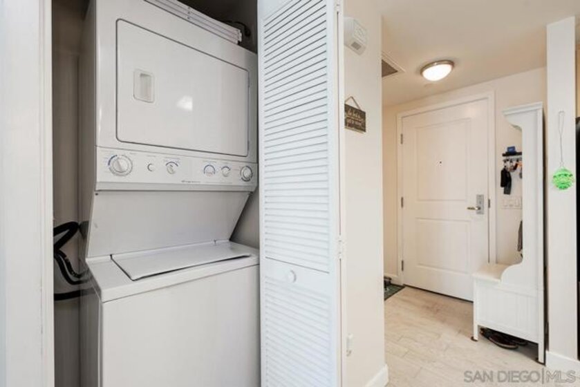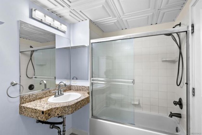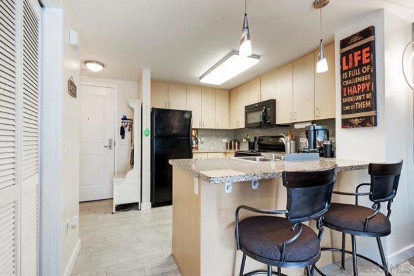 Amazing opportunity for a first-time buyer or investor! This move-in-ready third-floor residence in the iconic Smart Corner building offers a stylish Downtown lifestyle. Featuring wood-textured ceramic tile flooring throughout, exposed cement accents for a modern loft-like feel, and a contemporary ceiling fan that anchors the living space. Enjoy seamless indoor-outdoor living from the spacious private balcony that is perfect for relaxing or entertaining. The upgraded kitchen showcases granite countertops, designer tile backsplash, pendant lighting, and an eat-at counter ideal for casual dining. Includes a dedicated parking space and a rare assumable VA loan at 3.25%—an exceptional value in today’s market. Smart Corner is an all-encompassing hub of work, play, shop, and live! It is conveniently located near the 163 freeway, I-5, Highway 94, Petco Park, the Gaslamp Quarter, San Diego City College, and Balboa Park. A trolley station located below the development ensures Smart Corner has all an urban dweller could want. Amenities include 20th floor roof-top sun deck with forever views of the city skyline, 10-person hot tub, barbecue area, wet bar, 2nd floor Fitness Center, PLUS on-site management, and security.