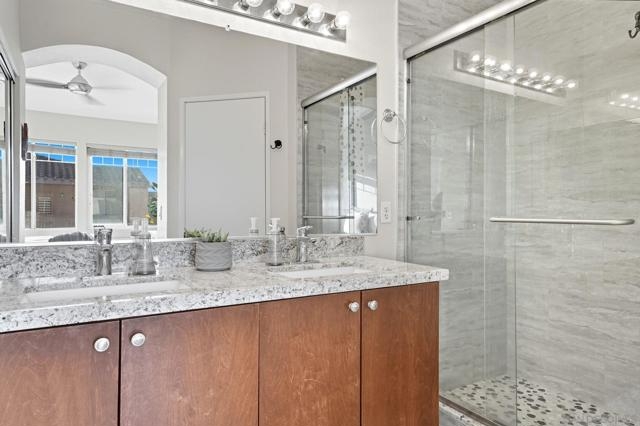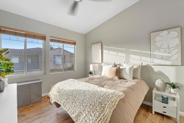 Refreshed and move-in ready! This END UNIT townhome in Ivy Hill at Scripps Ranch Villages features vaulted ceilings, engineered hardwood floors, and an updated kitchen with granite counters, warm wood cabinets, and a breakfast bar. Enjoy a private balcony, refreshed baths with granite counters, and a primary suite with updated walk-in shower and walk-in closet. Additional perks include brand new A/C, newer water heater (2024), ceiling fans, attached 2-car garage with washer/dryer. Community offers pool, spa, and playground in a prime Scripps Ranch location., close to shopping and restaurants.