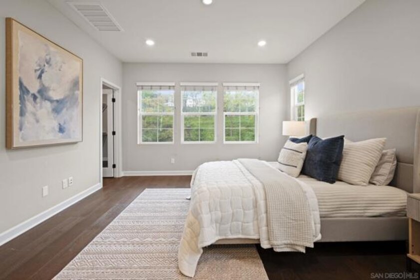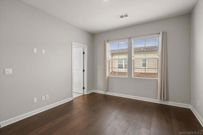 Beautiful 2021-Built End Unit Townhome in the Sought-After Promenade at Pacific Village – No Mello Roos! Welcome to this stunning three-level corner home where modern design meets effortless everyday living. Bathed in natural light from extra windows, this end unit townhome has 200 sq ft more living space than interior units. Featuring 9-foot ceilings and an open-concept living space, the heart of the home is perfect for gathering, relaxing, and entertaining. The modern kitchen boasts quartz countertops, a large island, pantry closet, and generous counter space — blending functionality with style. Step outside to enjoy your morning coffee on the charming front patio or unwind on your balcony on the second level, both ideal for fresh air and our Southern California sunshine. Smart and sustainable living are built right in, with a Solar Power Purchase Agreement (PPA) to help keep energy costs low and a whole-home water softener system for enhanced comfort and efficiency. Thoughtful details include a bedroom and full bathroom on the entry level, ideal for guests or a home office, and a dedicated laundry room for added convenience. Upstairs on the third level, the primary suite offers a peaceful retreat with a walk-in closet and a beautifully finished bathroom. The Promenade at Pacific Village offers resort-style amenities — a sparkling pool, playground, BBQ and picnic areas, and several dog parks. With no Mello Roos, easy access to fwys, shopping, dining, and top-rated Poway Unified schools, this home delivers! Come and see for yourself!