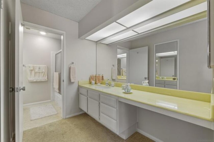 Vintage home. Priced and ready for your decorating. Prime corner location with extra windows and view of golf course. Spacious bedroom with 1 and 1/2 bathrooms. Assigned subterranean parking with elevator access. Near all the T-Town convenances' and Mission Trails Regional Park. Price reduced to be sold as is.