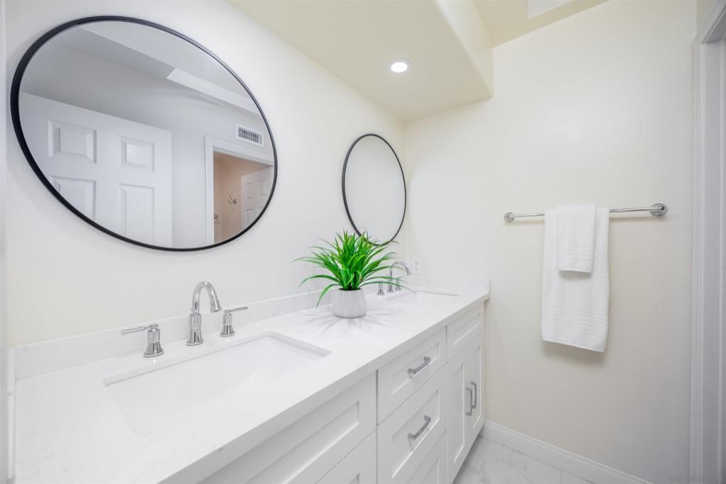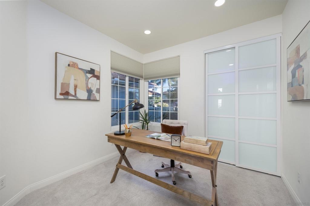 Take in breathtaking canyon views from this expansive and highly desirable floor plan in the sought-after Tierra Mesa community of Sorrento Mesa, ideally located near Mira Mesa and Sorrento Valley. This stunning, turnkey home offers a rare first-level bedroom and full bath—perfect for guests, multi-generational living, or a home office. Soaring ceilings and abundant natural light highlight the open living spaces, anchored by a warm fireplace. Extensive recent upgrades include a paid-off solar system, new engineered wood flooring downstairs, new carpet upstairs, a fully remodeled kitchen and bathrooms, new windows throughout, and an updated HVAC system. Additional features include an attached two-car garage, a dedicated laundry room, and a spacious patio designed for relaxing or entertaining while enjoying panoramic canyon views—an outdoor living space that truly must be seen in person. Conveniently located near shopping, dining, parks, and scenic trails, with quick access to I-5, I-805, and Highway 56, and just minutes from Del Mar Beach and Torrey Pines Golf Course. This is an exceptional opportunity in one of San Diego’s most desirable communities.