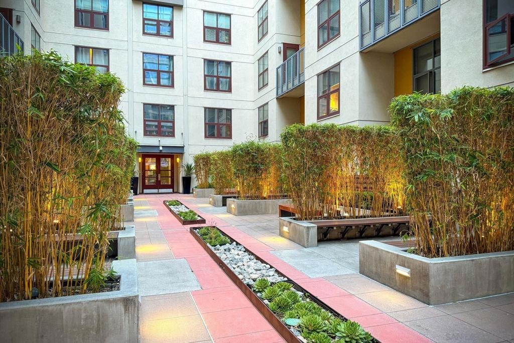 Welcome to urban living at its finest in the heart of East Village! This modern unit offers a perfect blend of style, comfort, and convenience. Located in the desirable Metrome building, this bright and spacious unit features an open floor plan with large windows that flood the space with natural light. The contemporary kitchen boasts granite countertops, stainless steel appliances, and ample cabinet space—perfect for entertaining or quiet nights in. The living area flows seamlessly to a private balcony where you can relax and enjoy city views. The generously sized bedroom includes a walk-in closet and easy access to the full bath with modern fixtures and in-unit laundry for added convenience. Additional highlights include central A/C, one assigned underground parking space, and access to premium community amenities such as a fitness center, clubhouse, and Zen courtyard. Just steps away from Petco Park, the Gaslamp Quarter, top dining, cafes, nightlife, and the Trolley—this location is unbeatable for walkability and access. Whether you're looking for your new home or a savvy investment, this unit offers exceptional value in one of downtown San Diego’s most vibrant neighborhoods. Don't miss this opportunity to live and thrive in the center of it all.