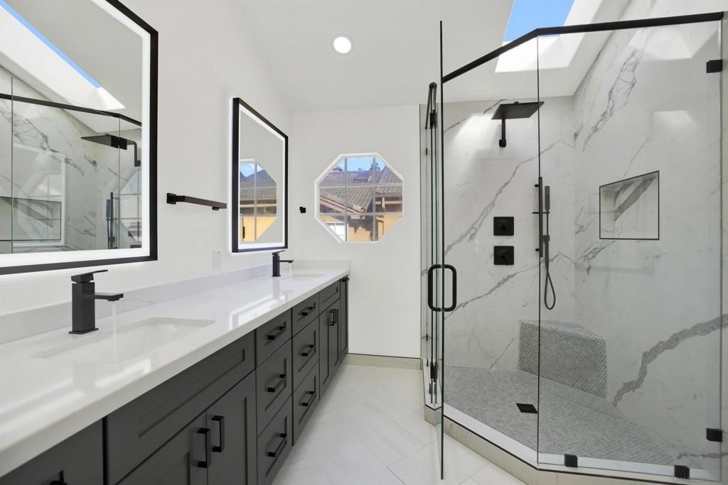 Stunningly remodeled from top to bottom! High-end finishes and exceptional attention to detail, no detail overlooked. This beautifully upgraded home features a designer kitchen with Bosch stainless steel appliances, sleek quartz countertops, and sophisticated modern finishes throughout. Enhanced by LED lighting, premium LVP flooring, and custom closet systems, the home offers both style and functionality. A rare highlight is the massive garage storage, providing abundant space for organization and everyday convenience. Ideally located in the heart of Carmel Valley, just moments from top-rated schools, premier shopping, dining, and coastal amenities.
