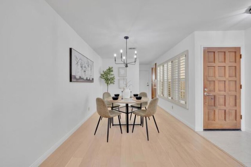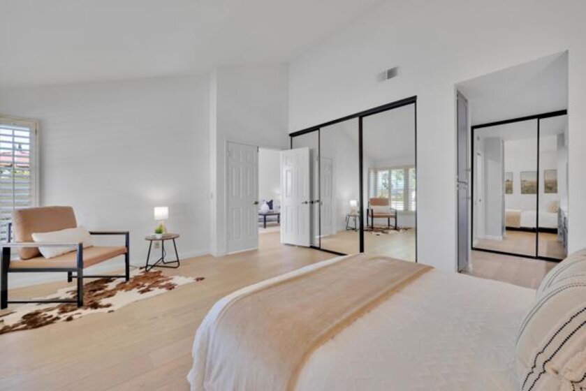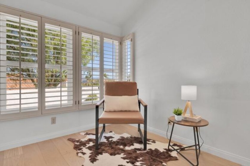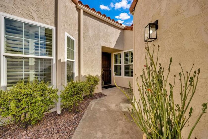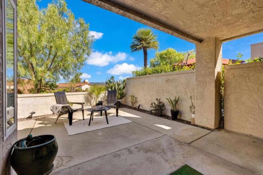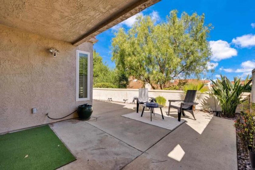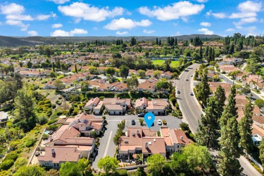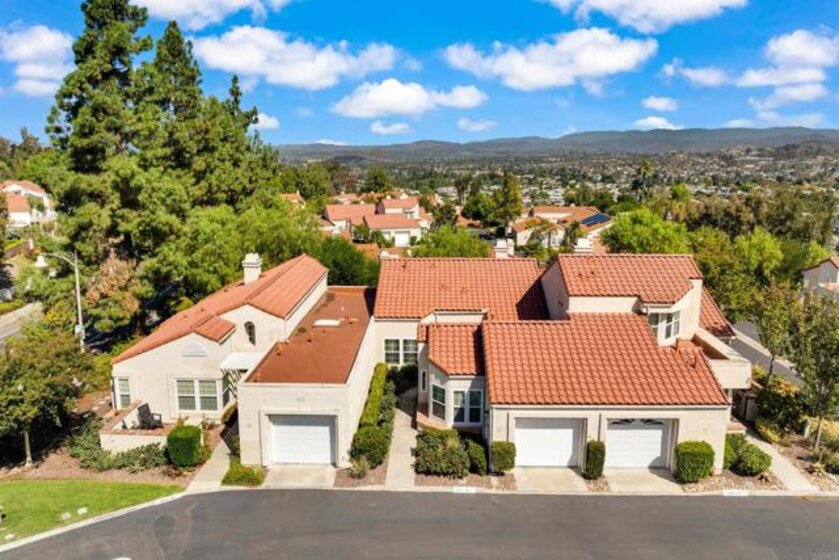 Nestled at the end of a quiet cul-de-sac, this beautifully maintained home offers the perfect blend of comfort, convenience, and style. Step inside and you’ll immediately notice the bright, airy feel created by vaulted ceilings in both the living room and the primary suite, complemented by two skylights that fill the home with natural light. The open and inviting floor plan features a spacious living room that flows seamlessly into a formal dining area — ideal for entertaining. The oversized kitchen offers abundant counter space, a cozy eat-in breakfast nook framed by a charming bay window, and updated stainless steel appliances including a microwave, dishwasher, and refrigerator. Throughout the home, stunning white oak wood flooring adds a touch of modern elegance, while the inside laundry room and direct garage access add everyday convenience. Step outside to your private back patio and take in peaceful mountain-top views — the perfect spot to relax with a morning coffee or unwind after a long day. Residents of the Las Brisas community enjoy access to a variety of resort-style amenities, including Lucido Park with playground, tennis courts, multiple sparkling pools, and more. Located within the highly acclaimed Poway Unified School District, this move-in ready home truly has it all — exceptional location, thoughtful upgrades, and a welcoming neighborhood atmosphere.