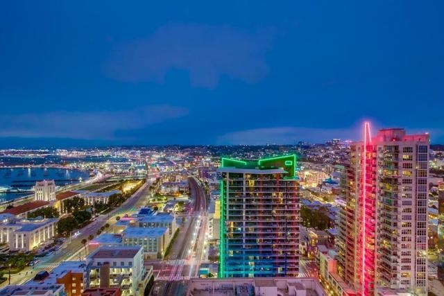 Views from every room! 29th floor Residence at Savina, a coveted Downtown San Diego location steps from Little Italy. This NW corner home looks out to Balboa Park, Sea World and across the bay for sweeping views and sunsets. Generous outdoor patio, modern open concept kitchen with top of the line Thermador appliances and wine refrigerator. Savina offers concierge services along with incredible amenities including resort area pool and spa, steam/sauna, incredible fitness center and more. Side by side parking spaces and extra large storage included with home.