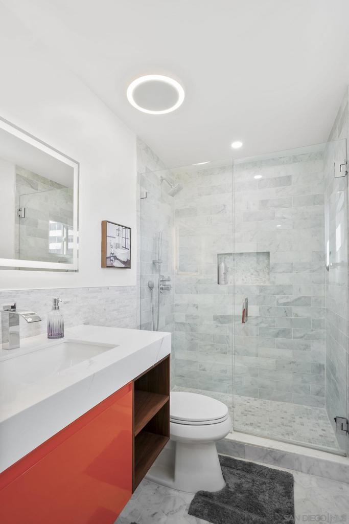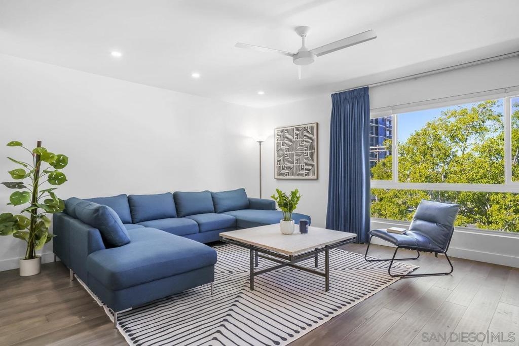 Welcome to an exceptional top-floor penthouse offering unparalleled sophistication and privacy. This highly upgraded corner unit boasts hardwood floors throughout, striking marbled bathrooms with floating vanities and a newly upgraded kitchen complete with stainless steel appliances and custom tile backsplash. Light and bright, highlighted by oversized windows with custom treatments. Enjoy ample storage with sleek finishes, and the convenience of a side-by-side laundry room, with washer and dryer included. Only one shared wall in a boutique 21-unit complex, privacy is paramount. Located in the heart of Bankers Hill/Hillcrest and just moments from Balboa Park, Little Italy, and downtown, this penthouse offers the perfect blend of luxury living and urban convenience. Short term rentals ok!