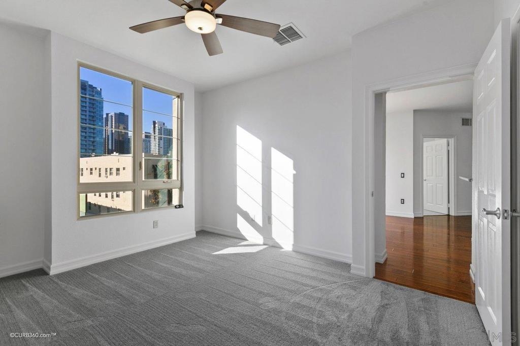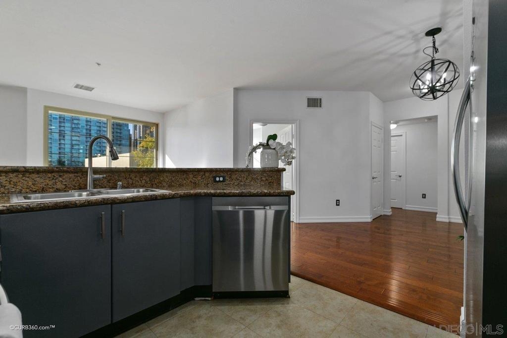 Gorgeous 3 bed home in Downtown! Open concept granite kitchen. Fresh paint, hardwood floors and new carpet. Corner unit with lots of sunlight and a balcony with city views! 2 parking spaces and storage unit. Fridge, washer and dryer included. Community features Community Room, Gym, Spa, Sauna, BBQ and 6 EV ports. You will love this home!