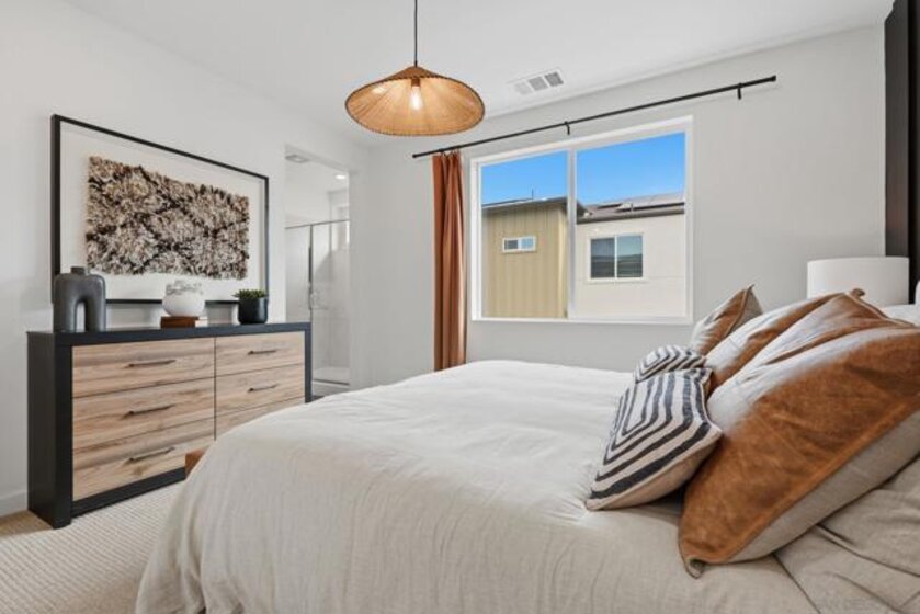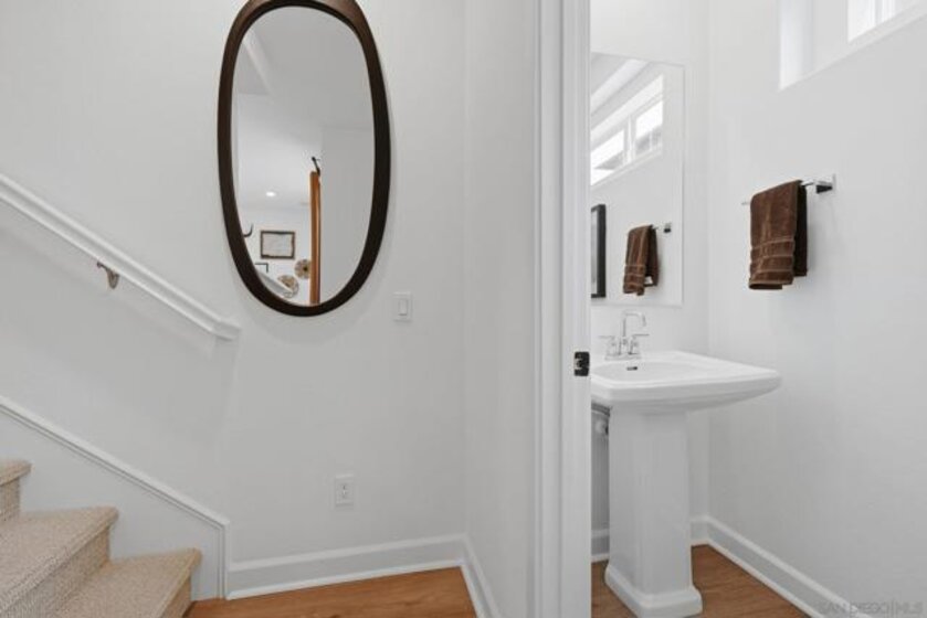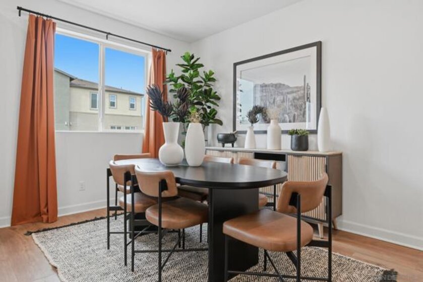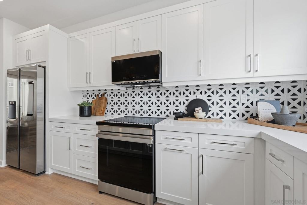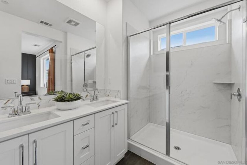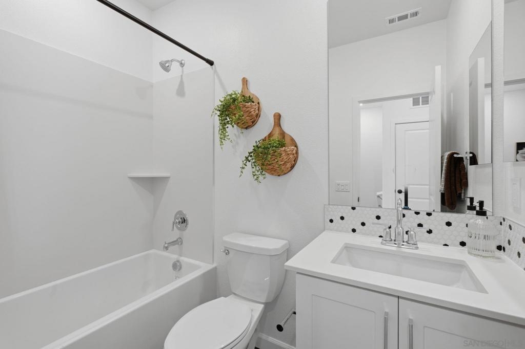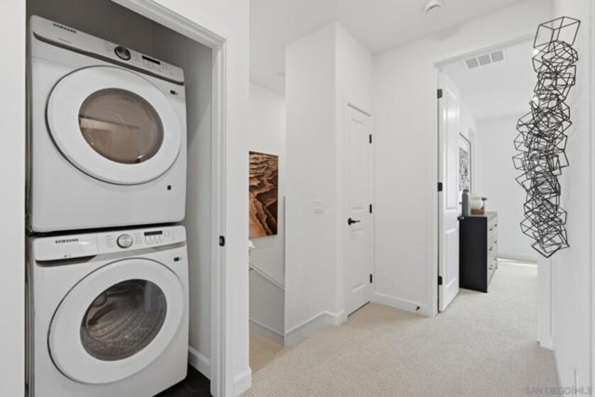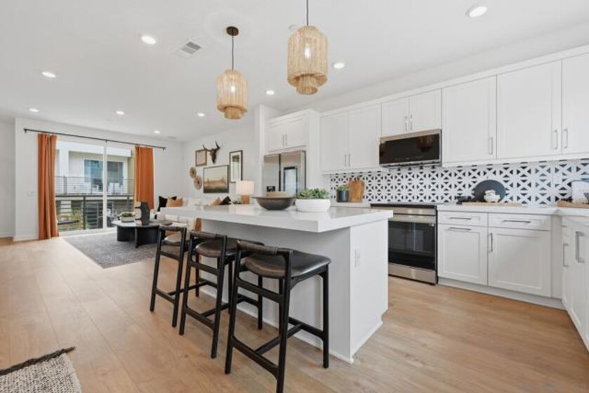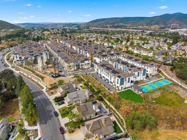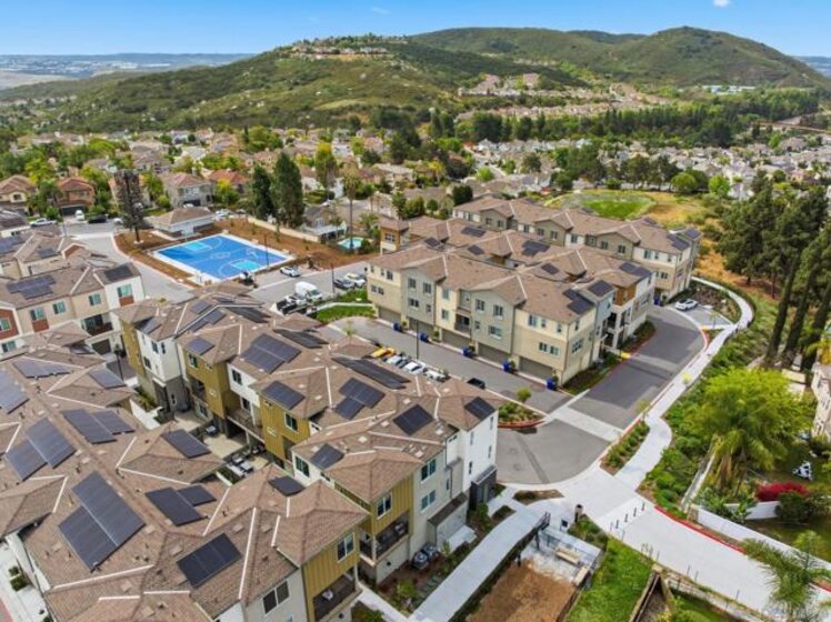This home is a former model with an upgraded backsplash and upgraded flooring, and is ready for moving in. On the first floor of this new three-story townhome, a convenient office offers a versatile space ready to be transformed to meet the needs of the home. On the second floor, the kitchen, dining area and Great Room share a footprint in the open-concept layout, with a deck offering convenient outdoor access. Three bedrooms can be found upstairs, including the expansive owner's suite. A two-bay garage completes the home. The Trails is a brand-new masterplan with single-family and attached homes in Carmel Mountain Ranch, San Diego, CA. Five communities of attached homes now selling! Lavender is a collection of brand-new townhomes for sale within The Trails masterplan in San Diego, CA. Residents enjoy a great central location and easy access to I-15 and 56 freeways for simplified commutes and getting around. The community is conveniently close to shopping at Carmel Mountain Ranch and UTC, 4S Ranch, Del Sur and more. Students will attend schools within the Poway School District.