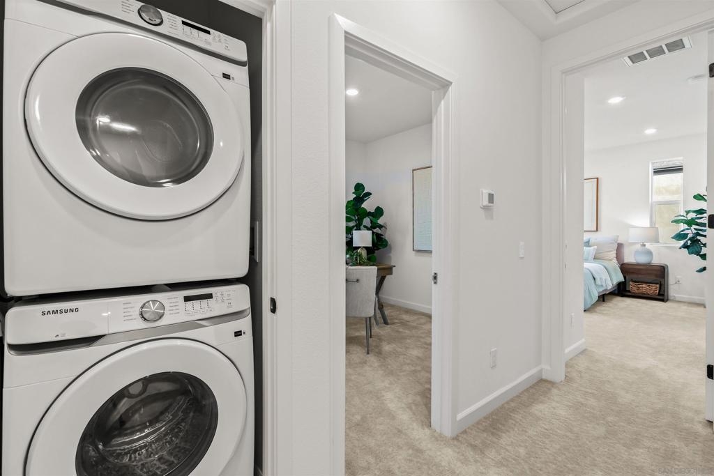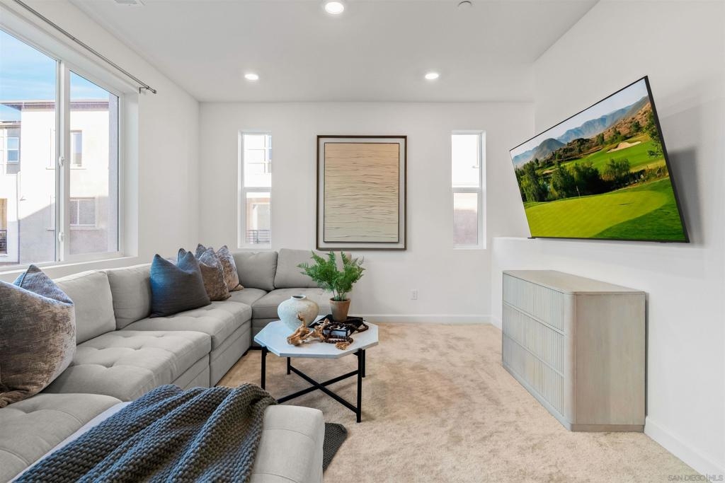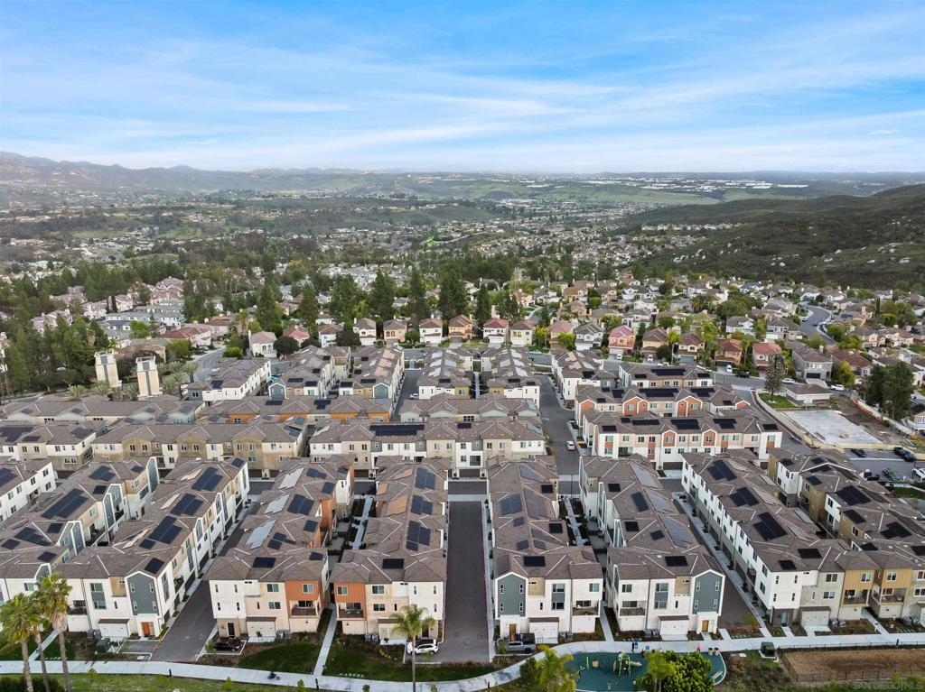 Welcome to 14138 Jonah Way, a rare corner-unit townhome in the sold-out Lavendar Residence 2 at The Trails in Carmel Mountain Ranch. This 2-bedroom, 2.5-bath home offers 1,209 sq ft of modern, energy-efficient living. Features include fully paid solar, a ChargePoint EV car charger, two-car side-by-side garage, and a private patio. The open main level is bright and functional with smart home features and quality finishes throughout. Upstairs, both bedrooms feature en-suite bathrooms, providing privacy and flexibility. Residents of The Trails enjoy resort-style amenities including a swimming pool, parks, playground, dog park, basketball court, pickleball courts, BBQ areas, and scenic walking trails. Ideally located near shopping, dining, major freeways, and within the Poway Unified School District, this home offers a rare opportunity to own a sold-out model in a highly desirable Carmel Mountain Ranch community.