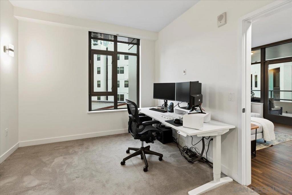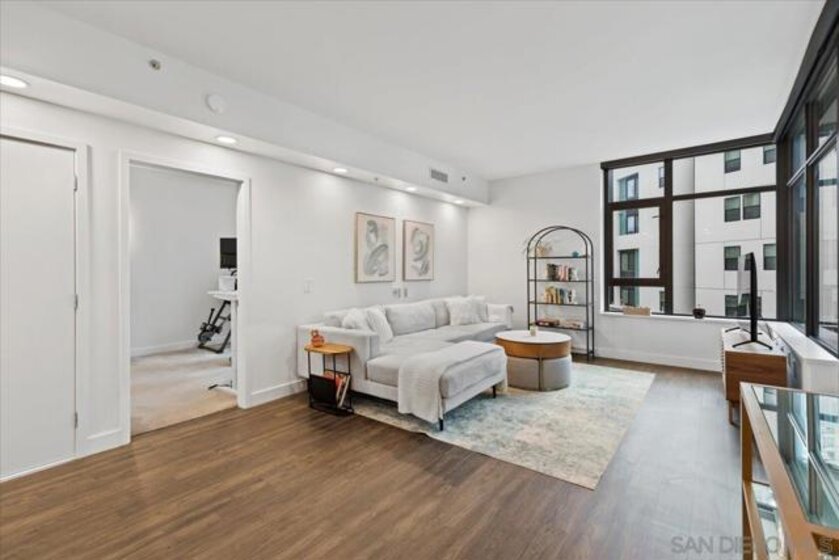 Set within the coveted desirable northwest corner of Aria in the serene enclave of Cortez Hill, this sophisticated residence delivers an exceptional blend of modern elegance and effortless livability. Sun-filled interiors unfold across a thoughtfully designed open floor plan, anchored by a beautifully updated kitchen featuring waterfall-edge quartz countertops, premium stainless steel appliances, abundant cabinetry, and a generous breakfast bar ideal for entertaining. Expansive windows bathe the living space in natural light and extend seamlessly to a spacious private balcony—perfect for morning coffee, sunset cocktails, or al fresco gatherings against the backdrop of city energy. Privacy and comfort are artfully balanced with a split-suite layout, offering two well-appointed primary retreats on opposite sides of the home. The main suite showcases dramatic corner windows, a walk-in closet, and a sleek ensuite bath with dual vanities and a walk-in shower, while the secondary suite provides a private ensuite ideal for guests or extended stays. Thoughtful upgrades include motorized living-room shades, full-size in-unit laundry, and two assigned garage parking spaces. Residents of Aria enjoy resort-inspired amenities including a 70-foot lap pool, spa, state-of-the-art fitness center, elegant resident lounge, on-site management, and secured FOB entry. Ideally positioned moments from Balboa Park, Little Italy, Petco Park, the Embarcadero, and the Gaslamp Quarter—with easy access to San Diego International Airport—this is elevated urban living at its finest and a must see!