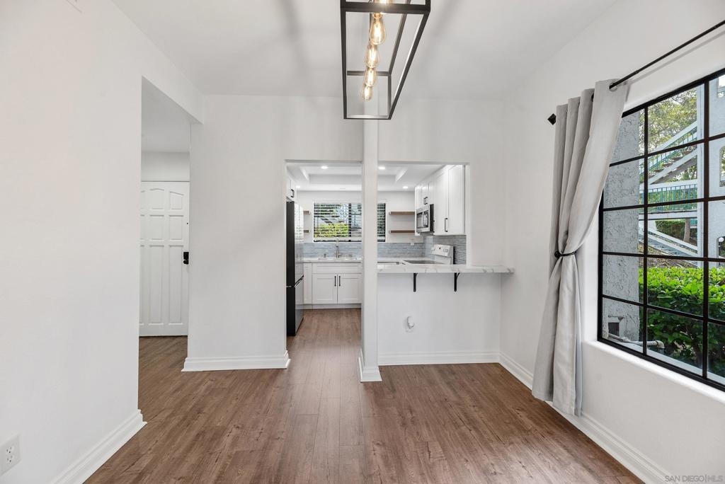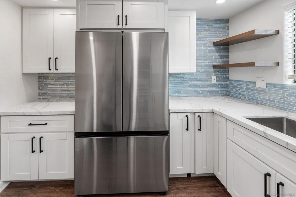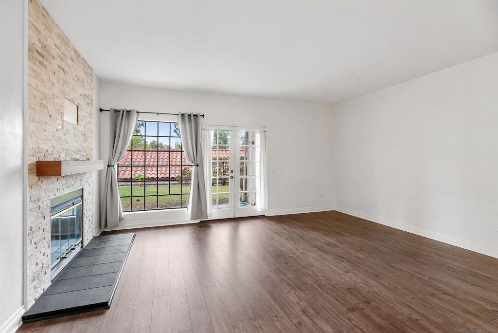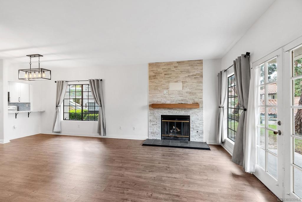 Refined single-story, first floor living awaits in the highly coveted Bernardo Heights community of Mira La Paz. This light-filled three-bedroom, two-bath end-unit residence offers privacy and effortless flow. Thoughtfully upgraded, this home showcases a beautifully remodeled kitchen with soft-close cabinetry and elegant quartz countertops. Wide-plank luxury vinyl flooring extends throughout, complemented by an upgraded gas fireplace, fresh interior paint, new trim and baseboards, and curated designer finishes. Additional highlights include: a newer water heater installed in 2022 and a detached TWO-car garage providing generous parking and storage. The HOA offers exceptional value, covering water, trash, cable, internet, exterior building maintenance/landscaping, and membership to the exclusive Bernardo Heights Clubhouse. The Bernardo Heights Clubhouse features a fitness center, 2 pools (main pool heated to 82 degrees F), wading pool, spa, locker rooms, tennis courts, 4 pickleball courts, 2 electric-gas grills, 2 basketball hoops, ping pong table, 2 pool tables, foosball, and a swim instructor and private tennis pro are available for lessons (fee-based). Lucido Park (close by) features 4 tennis courts, a playing field, 2 charcoal BBQs, and a children's play area. Ideally located within the award-winning Poway Unified School District and mere minutes away from freeway access, this gem won't last long! Come see it today before it's too late!
