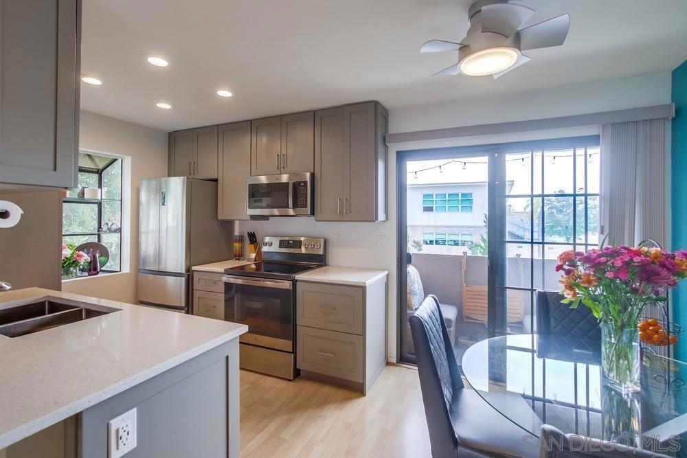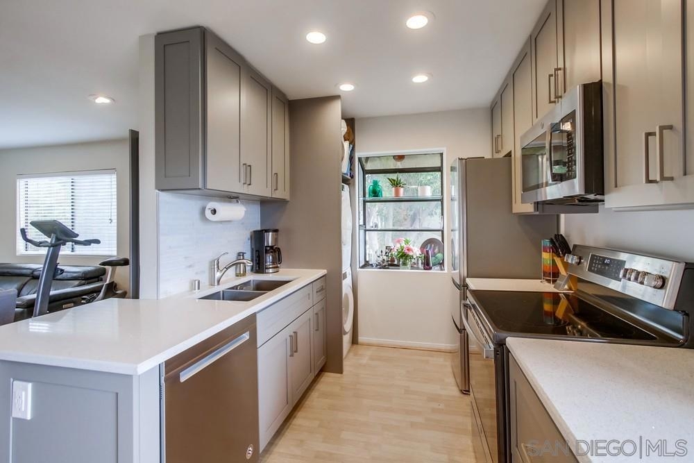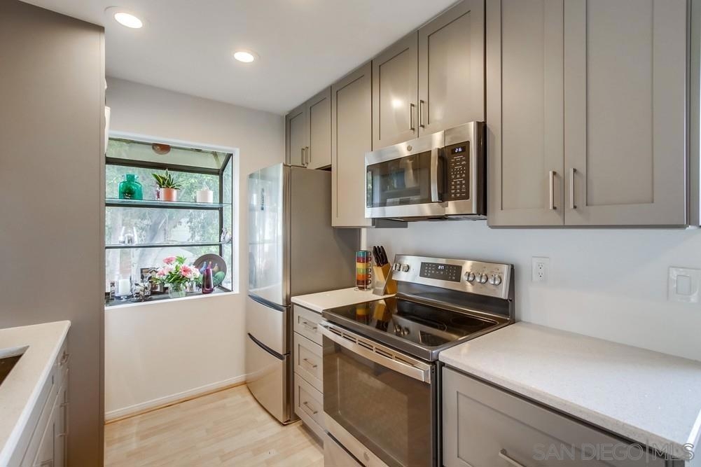 Imagine yourself living in this charmer top-floor unit located in University Heights! Short distance to Hillcrest and popular restaurants, coffeeshops, parks, shops, & more, this completely upgraded condo is turn-key & move-in ready for its newest residents. The entire kitchen renovation including fresh cabinets & countertops, full bathroom upgrades, & stainless steel appliances are all 2020 or newer. You won’t have to lift a finger once you step inside this completely reimagined space. Enjoy being in the heart of everything that beautiful San Diego has to offer while also relaxing in a quiet & peaceful corner unit within your gated community. Offering ample storage space, cozy wood-burning fireplace, in-unit laundry, & an open & spacious layout, this home is sure to provide metro living at an everyday comfort. Low HOA includes water & other perks, including a garage plus parking space! Whether you prefer to go out & enjoy the bustling neighborhood around you or stay in at home, 1636 Meade Avenue is waiting for you!