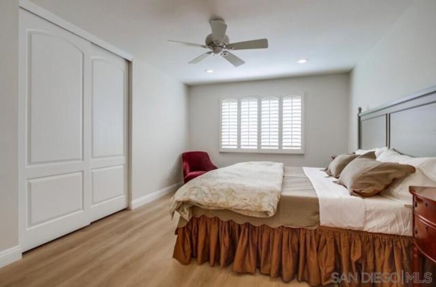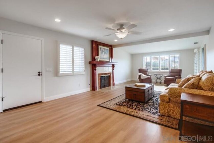 Discover easy living and timeless charm in this beautifully updated single-story 2BR/2BA home located in the desirable Seven Oaks 55+ community of Rancho Bernardo. Offering approx. 1,358 sq. ft. of light-filled living space, this residence blends modern comfort with low-maintenance living. Step inside to an open-concept great room and dining area featuring new LVP flooring, new moldings, recessed can lighting, and plantation shutters throughout. The well-appointed kitchen boasts KraftMaid semi-custom cabinetry, granite countertops, and newer appliances—ideal for everyday living or entertaining. A spacious primary suite includes built-in closet wardrobes and a beautifully bath. Additional highlights include a tankless water heater, new roof, and a private side patio with views, perfect for relaxing outdoors. This charming home also includes a lighted carport and a lockable golf cart garage, ideal for storage or a small workshop. Residents enjoy a vibrant lifestyle with access to the community clubhouse, pool, spa, fitness center, pickleball courts, woodshop, library, and a full calendar of social events. Upgrades/Features list: - Newer interior paint 2025 - Newer LVP flooring - Newer moldings - New roof 2025 - Tankless water heater - Plantation Shutters throughout -Recessed can lights - Kraftsmade semi custom cabinets - Open concept great room/dining -Well appointed kitchen -Spacious master suite - Built in closet wardrobes - Designer laundry room - View rear patio deck (Paint colors by Sherwin Williams - Shoji white walls, Pure white enamel doors and moldings)