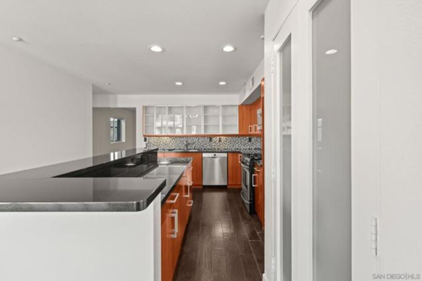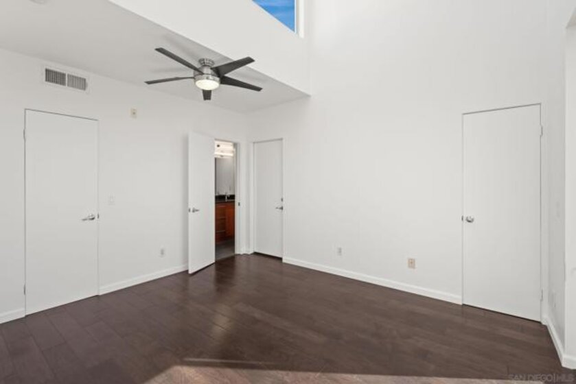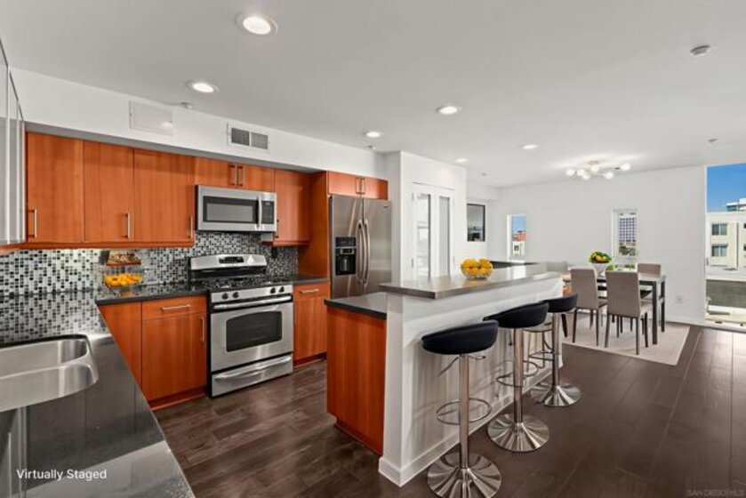 If you're looking for views this VA approved top level corner unit is for you! Take in the scenery of the Coronado Bridge, San Diego Bay, Petco Park, Downtown San Diego & more from the living room, primary bedroom & a wrap-around deck spanning over 300 sf. 1st floor includes 1 bedroom, open concept kitchen, laundry, dining area & a 120+ sf patio off the dining area. 2nd floor includes a huge living room with vaulted ceilings, loads of windows for natural light, two bedrooms & two bathrooms. Other features include wood floors throughout, central heat & a/c, and a 2-car garage with hydraulic lift. Located just minutes from the 5, 75 & Coronado Island.