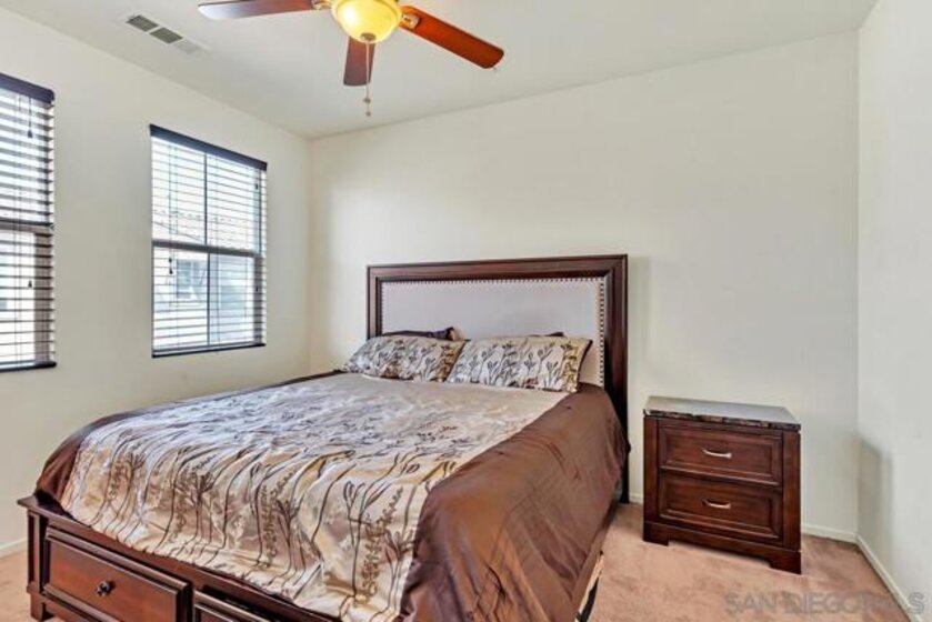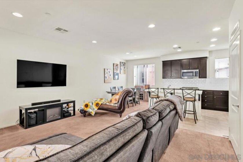 Three story townhome in Esperanza at Vista Del Sur. This stunning 4 Bedroom 3.5-bathroom with bedroom and full bathroom on the first floor. Spacious 2nd floor open concept floorplan with lots of natural light. The modern kitchen has stainless steel appliances, granite counters with under mount sink. Primary bed and bathroom on the 3rd floor with two additional bedrooms and full bath. Private Balcony and fenced front concrete yard. family-friendly community offers numerous amenities, including a pool, spa, playgrounds, and BBQ areas. Walking distance to Pacific Gateway Park. with hiking and walking paths, and the local high school and fields. Minutes from Cross Border Xpress and Las Americas Outlets and other shopping destinations.