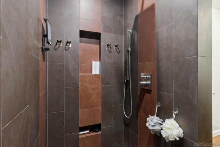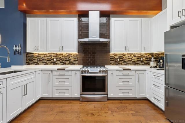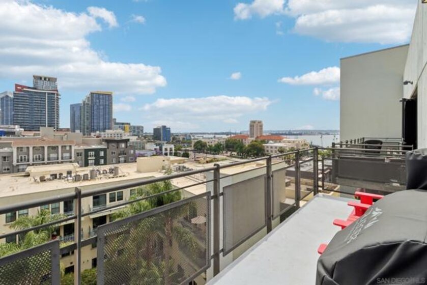 Live above it all in this rarely available penthouse loft at DOMA, one of Little Italy’s most architecturally celebrated buildings. With soaring ceilings, a dramatic skylight, and floor-to-ceiling windows framing panoramic bay and skyline views, this residence captures the essence of chic urban living. The open-concept layout delivers the true loft experience—light-filled, expansive, and effortlessly stylish—yet offers the versatility to be easily reimagined with defined living areas or additional private spaces to suit your lifestyle. The fluid design currently integrates living, dining, kitchen, and office zones, while a spacious private balcony extends the living outdoors with front-row views of San Diego sunsets, fireworks, and sparkling city lights. Modern upgrades enhance both comfort and convenience: a generous walk-in closet, in-unit laundry, Nest thermostat, Lutron blackout shades, reverse osmosis water filtration, built-in Sonos surround sound, and a brand-new HVAC system. Two side-by-side parking spaces with EV charger and a large private storage unit add everyday ease. At DOMA, bold industrial architecture pairs with resort-style amenities including a recently remodeled rooftop deck with sweeping bay views, fitness center, and tranquil courtyard. Just steps to Little Italy’s acclaimed restaurants, cafés, boutiques, and Farmers Market, this penthouse loft delivers a rare blend of style, flexibility, and location.
