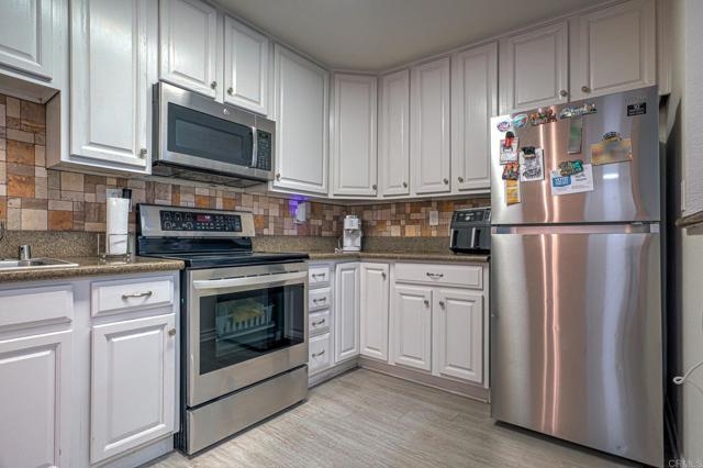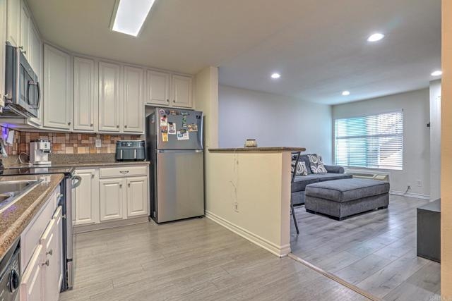 This beautiful condo on ground level features laminate flooring, quarts counter tops, stainless steel appliances, recessed LED lighting, dual pane windows, shaker style cabinets, washer/dryer combo unit in bathroom. Includes two assigned parking spots. Low HOA including water among trash, sewer, maintenance... Easy freeway access