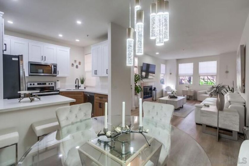 Experience resort-style living in the desirable gated community of Morada at Bernardo Vista Del Lago! This beautifully updated ground-floor 1-bedroom, 1-bath condo , is one few rare unit with a private 1-car garage welcomes you with soaring ceilings, abundant natural light, and elegant luxury wood flooring throughout the living and dining areas. The spacious bedroom includes a walk-in closet and private patio access, while the living room opens to a serene outdoor retreat complete with a large storage closet—perfect for relaxation or entertaining. The kitchen features brand-new appliances (all included), and a full-sized washer and dryer are conveniently located in the hallway. Enjoy the comfort of your private garage with extra storage and ample guest parking throughout the community. Residents of Morada at Bernardo Vista Del Lago enjoy resort-quality amenities, including two sparkling pools, a spa, tennis courts, a fitness center, clubhouse, and billiards room. Ideally situated just off I-15, you’re minutes from shopping, dining, Westfield North County Mall, and the scenic Lake Hodges trails. The HOA covers water, trash, exterior maintenance, and full access to all amenities. A true turnkey opportunity in one of San Diego’s most sought-after communities!