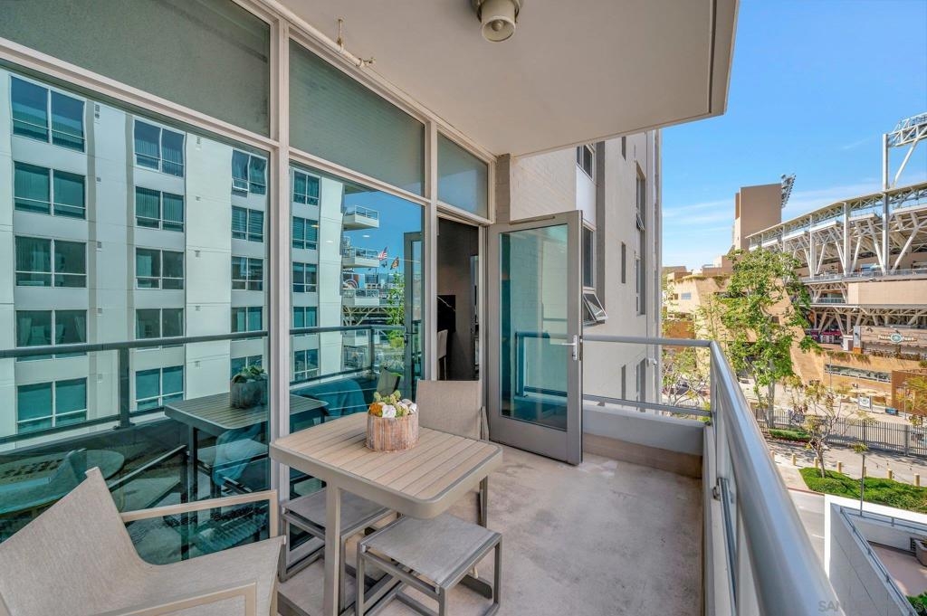 Step into luxury living with this impeccably designed one bedroom condo boasting views overlooking the iconic Petco Park stadium. Every inch of this residence brings it, from the sleek paneled walls that add depth and character to the hidden laundry room discreetly tucked away for convenience and functionality. The open-concept layout seamlessly integrates the living, dining, and kitchen areas, maximizing space and emphasizing modern elegance. Built-in storage solutions throughout ensure clutter is kept at bay, while enhancing the aesthetic appeal with seamless design integration. The kitchen is a chef's dream, featuring top-of-the-line appliances including an integrated refrigerator and dishwasher. Whether you're entertaining guests or preparing a gourmet meal for one, this kitchen is equipped to handle it all with style and efficiency. As you unwind in the cozy living area, the backdrop of Petco Park provides an unparalleled atmosphere, evoking the excitement of game day right from the comfort of your own home. Whether you're a baseball enthusiast or simply appreciate the energy of city living, this condo offers a unique lifestyle experience that truly packs a punch.