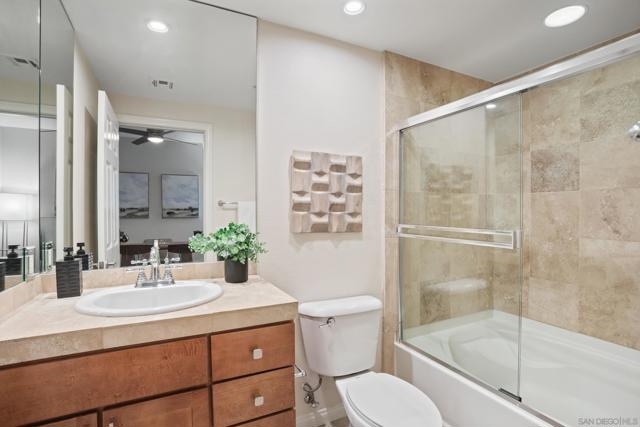 Live in the heart of it all! This move-in ready, two-story condo in Bankers Hill offers the perfect blend of modern style, everyday convenience, and unbeatable walkability. Just steps from Hob Nob Hill, Balboa Park, Downtown, and Little Italy, you’ll be surrounded by San Diego’s best dining, culture, and nightlife—no car needed. Inside, discover two spacious ensuite primary bedrooms, each with a walk-in closet and private bathroom—one featuring a luxurious soaking tub, the other a standing shower and barn door feature. The open-concept living area showcases walnut hardwood floors, a sleek kitchen with granite counters and stainless-steel appliances, plus a convenient powder room and full-size in-unit laundry. Enjoy morning coffee or evening wine on two private patios, and take advantage of rare extras like bonus storage closets, a shared bike room, and secure tandem parking with elevator access. When you’re not out exploring, unwind at The Lodge’s fitness center and BBQ patio, or head up to the 4th floor for panoramic views of downtown, the harbor, and planes gliding into San Diego Airport. Whether you’re a first-time buyer or looking for the perfect low-maintenance city home, this condo delivers the ultimate urban lifestyle in one of San Diego’s most vibrant, walkable neighborhoods. Bankers Hill, San Diego, offers a mix of attractions, from historical sites and cultural experiences to scenic views and delicious dining. Key highlights include the Spruce Street Suspension Bridge for a unique walk, the vibrant Balboa Park with its museums and gardens, and the culinary delights at Cucina Urbana, Azuki Sushi, Barrio Star, and more.