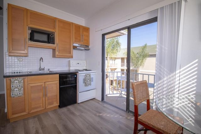 Top-floor studio located in a gated community in Golden Hill. This bright and airy unit features upgraded finishes including granite countertops, maple cabinetry, luxury vinyl flooring, and fresh interior paint. The community offers convenient elevator access, a sauna with shower, on-site laundry, bike storage, and secured underground parking with an assigned space and EV charging stations. Just minutes to Balboa Park, South Park, Downtown, local dining, and shops. Complex allows short-term rentals with a 7-day minimum, making it a great opportunity for both owners and investors. VA and CONV eligible!