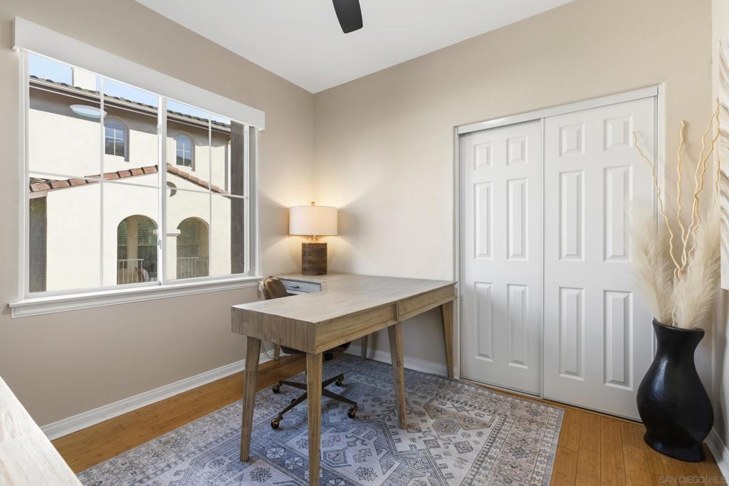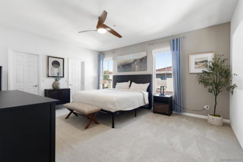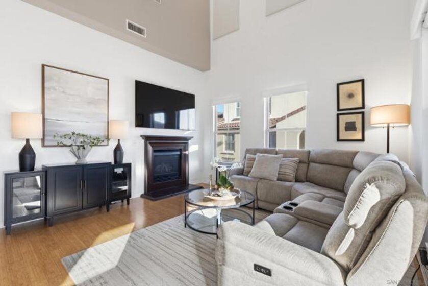 Welcome to 2702 Piantino Circle, a beautifully upgraded corner-unit townhome in the desirable gated community of Escala in the heart of Mission Valley. This upgraded residence exudes a modern, sophisticated feel from the moment you walk in. The renovated kitchen is a true showstopper, featuring all-new appliances, updated cabinetry, and gorgeous Cambria quartz countertops that bring both elegance and function to the space. Custom window shades add a refined finishing touch throughout. The primary retreat is a world of its own — generously sized and thoughtfully positioned away from the rest of the home, offering the privacy and tranquility you deserve. The main bathroom has been tastefully renovated to complement the home's modern aesthetic. With updated cabinetry carried throughout the entire residence, every detail has been carefully considered. Enjoy resort-style living with access to Escala's world-class amenities including pools, spa, fitness center, tennis courts, and scenic walking trails — all just minutes from Fashion Valley, downtown San Diego, and the beach.
