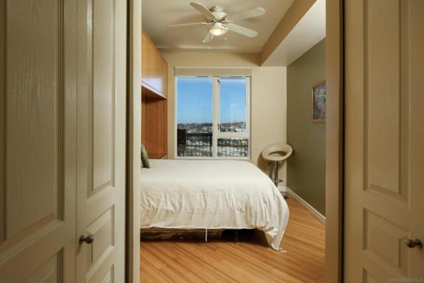 Welcome to sky-high luxury in the heart of Little Italy. Perched on the 19th floor of the highly sought-after La Vita, this turnkey 1-bedroom, 1-bath residence offers an exceptional urban living experience. The desirable north-facing orientation fills the home with soft, natural light throughout the day while minimizing heat, creating a bright and comfortable atmosphere. Step onto your private balcony and enjoy sweeping views of the downtown skyline, Balboa Park, and the sparkling San Diego Bay. Inside, a thoughtfully designed layout blends style and functionality, featuring custom built-ins for optimal storage and sophisticated up and down lighting to set the perfect ambiance. Built with exceptional quality, the residence offers a peaceful, quiet retreat above the vibrant city below. This move-in ready home may be sold fully furnished. Residents of La Vita enjoy a secure, amenity-rich community including a pool, BBQ areas, lush green space with tranquil fountains, a fitness center, bike storage, and one assigned parking space. Located in one of San Diego’s most dynamic neighborhoods, you’re just steps from renowned dining, charming cafés, boutique shopping, and the famous Little Italy Farmers Market. Experience the best of downtown living in a residence that perfectly balances energy, comfort, and style.