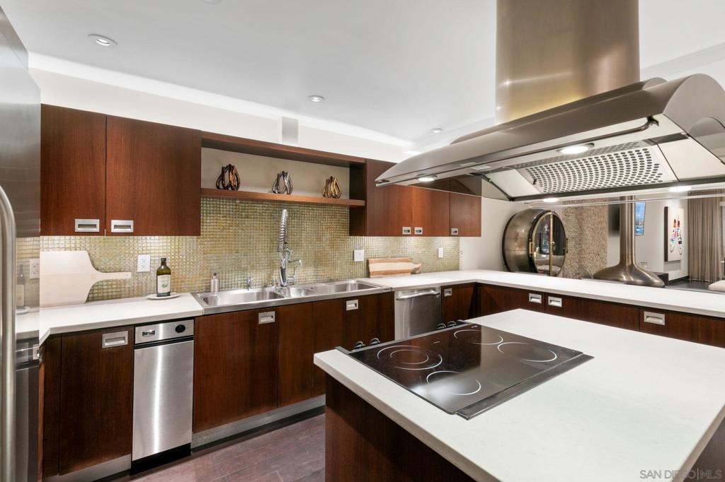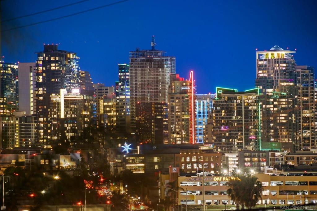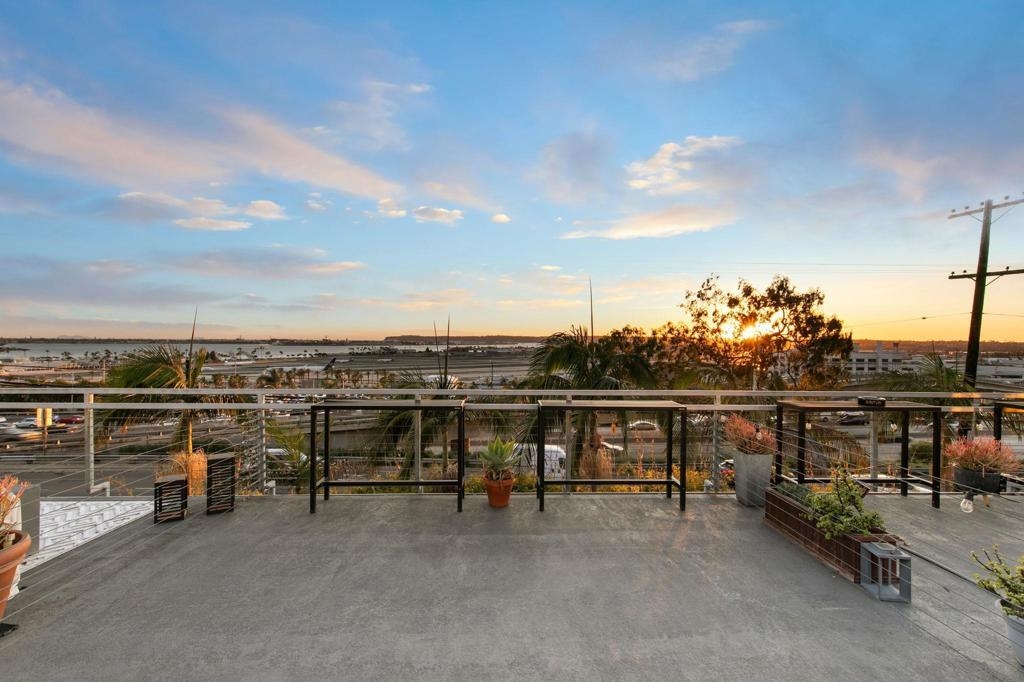 This striking three-level loft, where modern design meets sweeping views of the San Diego Bay and Downtown skyline. From the moment you step inside, soaring ceilings and architectural details set the tone for a home that feels both sophisticated and effortlessly livable. Custom floating stairs lead you through thoughtfully designed spaces, beginning with a versatile first-floor family room or office—ideal for working from home or creating a private retreat. With a second bedroom featuring its own walk-in closet. The main living level showcases an open-concept kitchen, dining, and living area, perfect for entertaining or simply enjoying the rhythm of city life. Large windows frame the surrounding urban landscape while maintaining a surprisingly peaceful atmosphere thanks to the home’s excellent insulation. Occupying the entire third level, the primary suite is a private sanctuary featuring a walk-in closet and a beautifully remodeled bathroom with custom stonework. Just beyond, an iron catwalk leads to one of the home’s most extraordinary features a 20' x 15' rooftop deck with breathtaking panoramic views stretching across San Diego Bay to Point Loma, the downtown skyline, and the surrounding city lights. Thoughtful upgrades elevate the experience throughout the home, including a Sonos sound system, Lutron smart lighting, Nest thermostat, and a built-in Miele espresso machine in the kitchen bringing luxury and convenience into everyday living. This home is the perfect balance of modern design, privacy, and vibrant city living—all in one of San Diego’s dynamic neighborhoods. Rooftop deck is 20x15 has stunning sweeping views. Second bedroom has walk-in closet. Home is very insulated which minimizes the urban sounds. Owner upgraded the unit with surround sound system controllable by SONOS, Lutron lighting system accessible via app/iPad, and NEST Thermostat, Somfy motorized window shades. Renovated master bathroom with custom stone work. Installed a Miele espresso maker in the kitchen. Moddom Lofts is walking distance to some of the best restaurants, coffee shops, and bars the city has to offer. Close to and walkable to Balboa Park, Little Italy, Mission Hills, and Bankers Hill with easy access to Interstate 5.