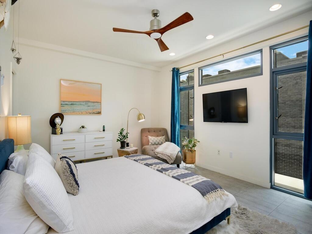 Nestled blocks from Balboa Park, shopping, dining and more is this multi-level 1 bedroom, 1 and a half bath that lives like single family home! With air gaps between neighbors for quiet living; a connected, spacious and private 2 car garage; private laundry; vaulted ceilings; low HOAs; floor to ceiling window sliders; large kitchen waterfall island; roof top patio and more, this home is the perfect place to settle after a long day. This home offers easy, low maintenance living with tiled floors throughout and upgraded roof top turf and pad. With added custom California Closets, there isn't an inch of unmaximized storage for all your needs! Equipment: Dryer,Fire Sprinklers,Garage Door Opener, Washer Sewer: Sewer Connected