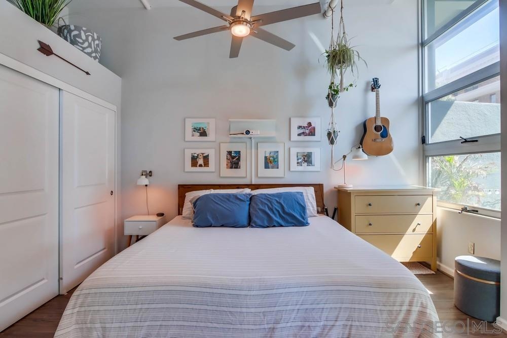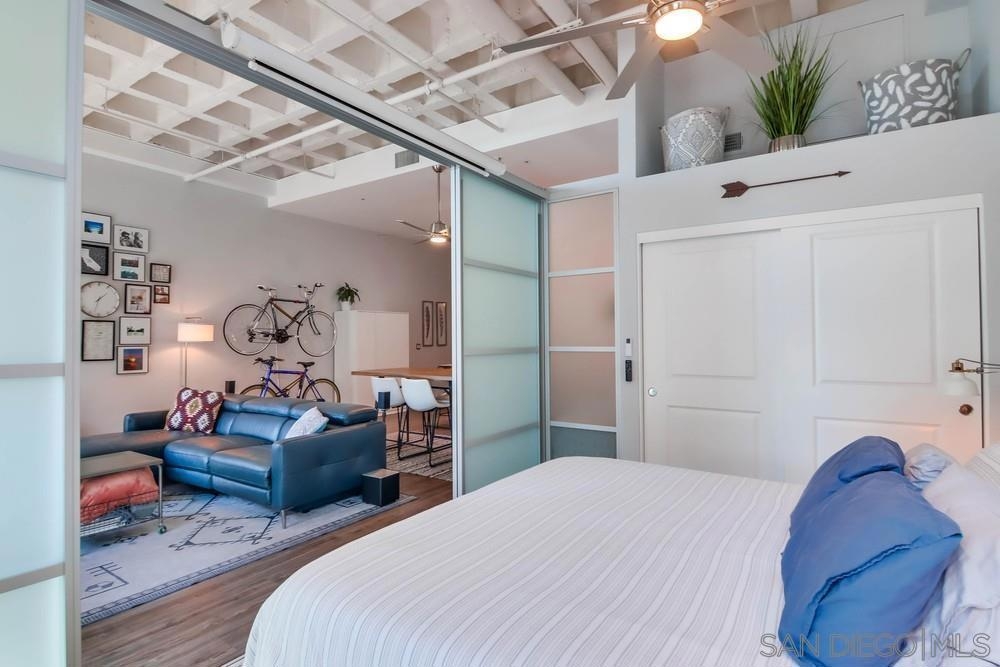 This former FBI building has been transformed into light filled lofts with mid-century detailed waffle ceilings and a great location. Airy, Bright Loft living allows for open spacious living quarters and expansive patio balconies, 15ft ceilings, an extra half bath for guests, and upgraded Primary Bedroom (enclosed) & Luxury Bathroom. Offering unique views of the famous Balboa Park and peeks of the water from the over-sized Balcony. Short steps or bike ride to the San Diego Zoo, Balboa Park, famous SD restaurants, coffee shops, Hillcrest, Downtown, Little Italy, and exciting nightlife. 2 underground parking spaces and a private storage unit deeded. Also, it is at the corner of the building on top floor...lives like a Penthouse! Equipment: Dryer,Garage Door Opener, Washer Sewer: Sewer Connected Topography: LL,
