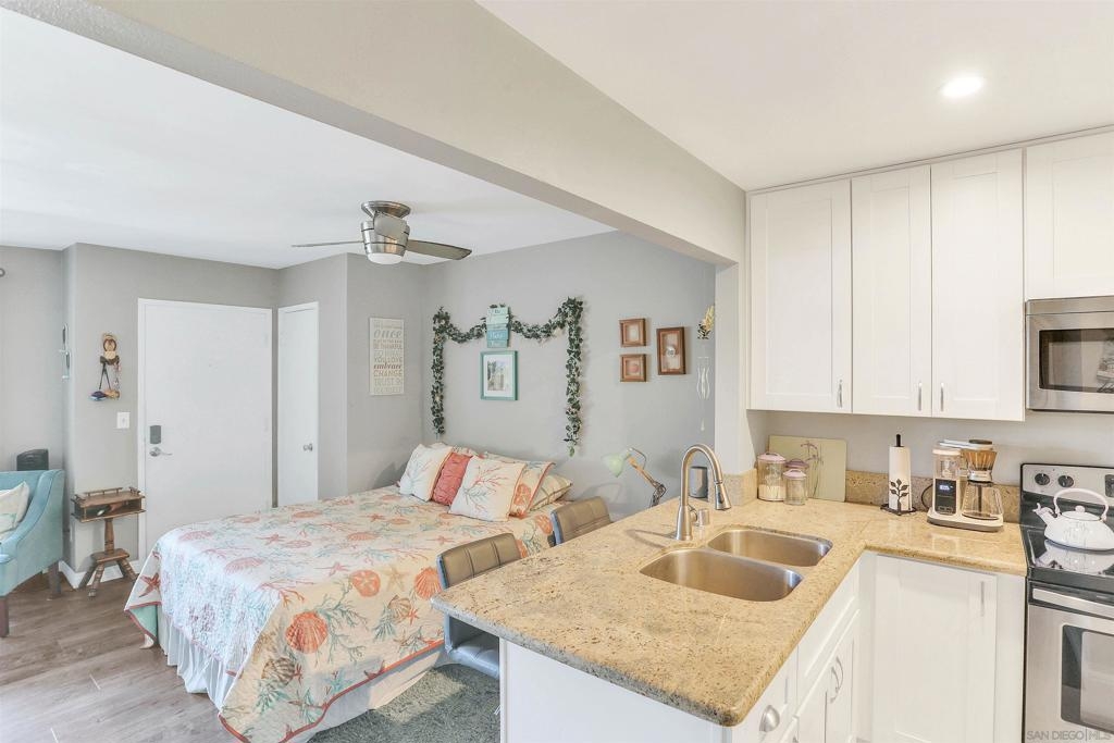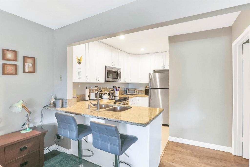 Centrally located Move In ready lower level 463 sqft studio nestled in the community of Kearny Mesa in the Village Woods complex. Remodeled kitchen with granite counters,SS appliances inc fridge, & eat in bar area. Open floor plan with recessed lighting provides for a great use of space that opens out to the enclosed yard area with an oversized slider. The remodeled bathroom includes tiled shower surround, newer vanity, & built ins. Complex features mature landscaping, pool, spa, BBQ areas, & community laundry. 1 assigned space. HOA $312/month. VA approved complex. Pet Policy allows for 1 pet up to 30lbs. Excellent location near Mesa College, USD, Sharp Memorial, Sharp Mary Birch, Rady Children's Hospital. Near public transit. Explore the wealth of options for restaurants in the Convoy area. Enjoy nearby Kearny Mesa Rec Center, local dog park, and Tecolote Canyon for outdoor activities. Excellent starter home or for investment. Min rental term 30 days. Easy access to 805/163 freeways.