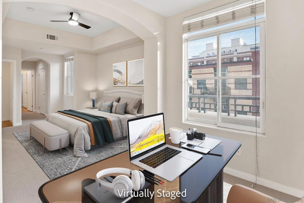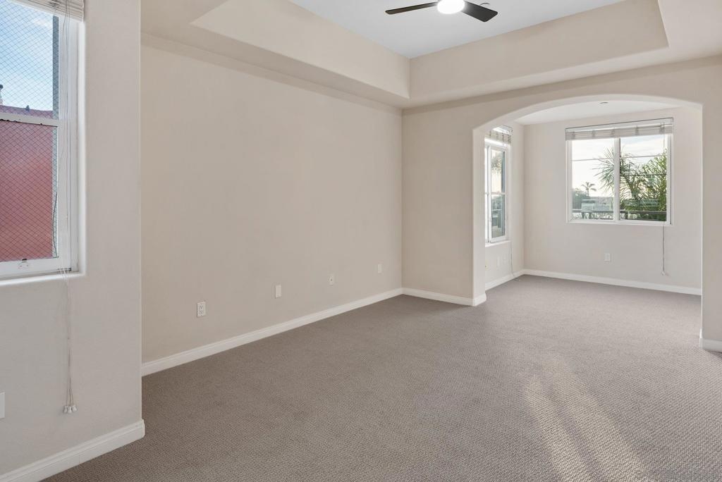 Welcome to effortless downtown living at Epic on 5th, one of Bankers Hill’s most desirable addresses. This end-unit residence at 3275 5th Avenue #306 offers privacy, style, and convenience in the heart of San Diego. Thoughtfully refreshed, the home features new carpet, ceiling fans, an updated kitchen and baths, and a new refrigerator. The light-filled interior showcases an open, modern layout ideal for both everyday living and entertaining. As an end unit, the residence enjoys additional windows and a quiet, tucked-away feel. A spacious covered deck provides the perfect place to unwind, while the inviting community courtyard offers BBQs and generous seating areas for gatherings. A rare two assigned parking spaces add exceptional value and convenience in this prime urban location. Epic on 5th is a contemporary, well-maintained community just moments from Balboa Park, Little Italy, Hillcrest, and downtown dining, shopping, and nightlife—offering the best of walkable city living. This is a fantastic opportunity to own a stylish home in a premier complex with unbeatable access to everything downtown San Diego has to offer.