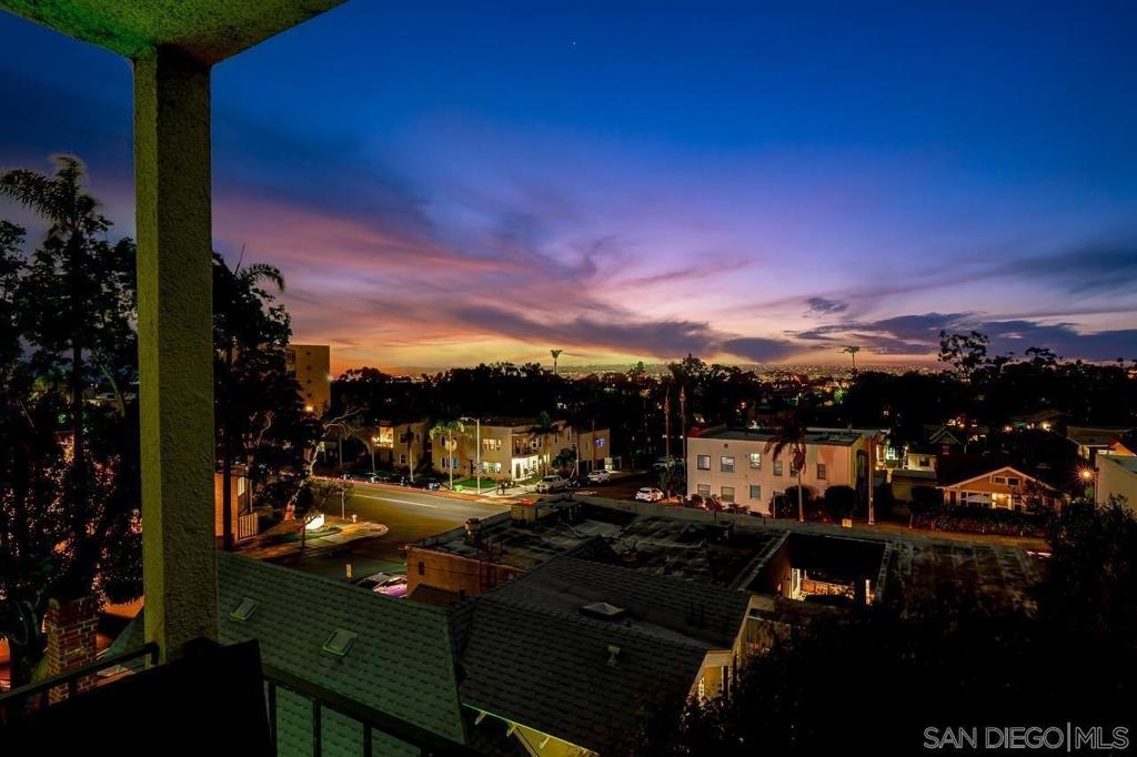 Move-in ready, top floor unit with stunning city views in coveted Bankers Hill! This spacious 2 bed 2 bath floorplan includes expansive windows, combined living & dining room, large galley style kitchen with rich cherry wood cabinetry & unique quartz counters, West-facing view balcony, neutral color palette, plantation shutters in living room, central air & heat and reserved parking! Secure, well-maintained building with pool & recent updates to landscaping. Friendly condo community. Prime location near Balboa Park, shopping, dining, nightlife and downtown San Diego! Close to airport & beaches!