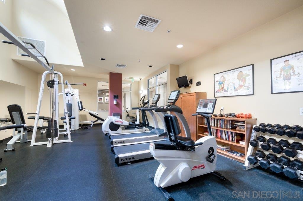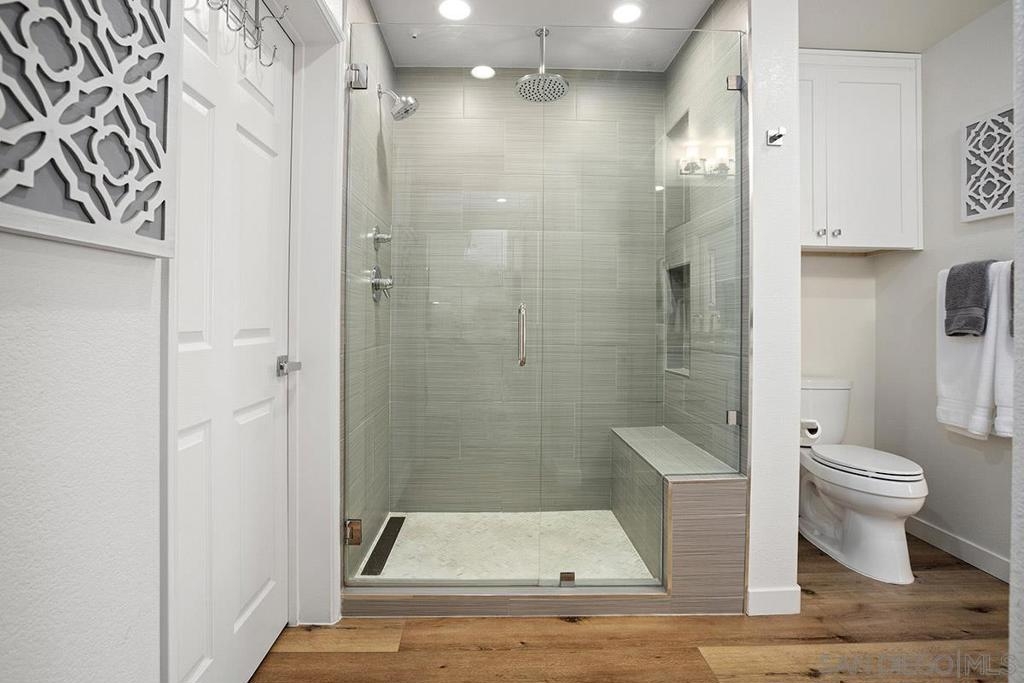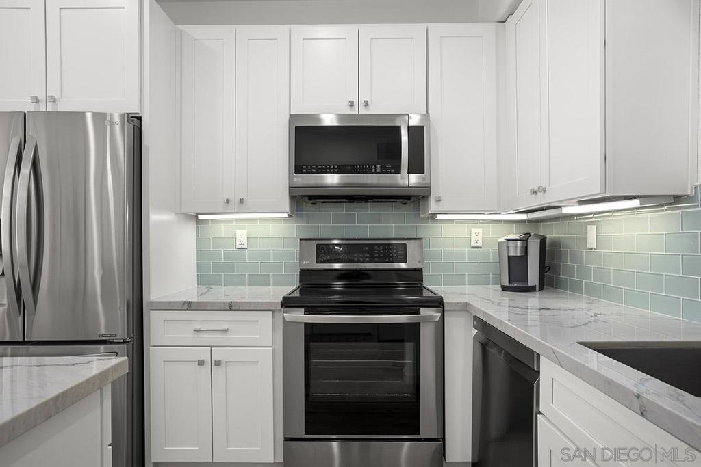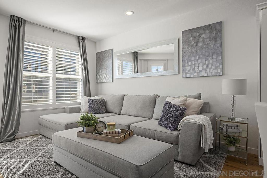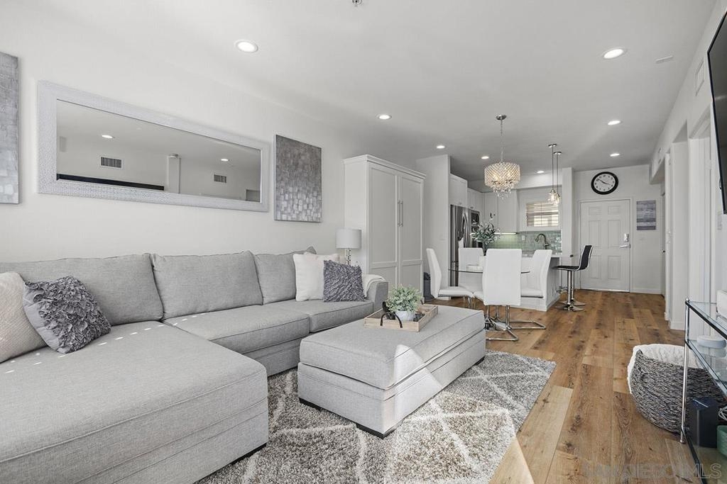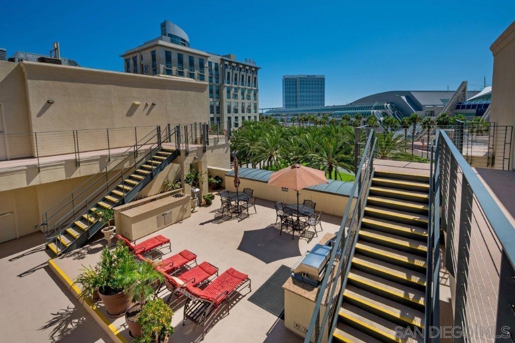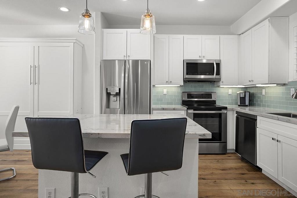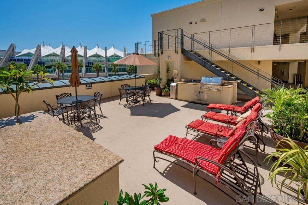 Welcome to your own private sanctuary in the heart of the coverted Marina District with this stunning west-facing Crown Bay residence. Renovated to perfection, this exquisite home is a dreamy Downtown respite. As you step inside, you'll be swept away by the stylish and sophisticated design that exudes elegance and luxury. The open-concept living space is bathed in natural light, with luxury flooring and recessed lighting adding to the ambiance of the space. California shutters provide a touch of privacy, while still allowing you to take in the breathtaking views and the vibrant sunset skies from the secluded balcony. The upgraded open kitchen is a chef's delight, featuring sleek slab marble surfaces, stainless appliances, and a refreshing blue tile backsplash that perfectly complements the pristine white walls. The oversized center island illuminated by pendant lighting is the perfect spot to gather with loved ones and entertain. The bedroom is the ultimate retreat, boasting a unique custom textured accent wall, a spacious walk-in closet, and a completely renovated ensuite bathroom with a frameless step-in rain shower with a French drain. The ample built-in cabinetry for toiletries and linens alike ensures that everything is within easy reach. For even more flexibility, the living room features a wall-mounted Murphy bed, offering a convenient and comfortable sleeping area for guests. When not in use, the Murphy bed can be stowed away, freeing up even more space for entertaining or relaxation. Additional highlights of this turnkey home include a secluded balcony that offers views of the lively Marina District below, plenty of storage including a balcony closet, and a secured parking space. Don't miss your chance to experience this exquisite home for yourself! Located in the esteemed Marina District, Crown Bay is known for its impressive entrance lobby, pleasant courtyards, 5th floor grilling area with a city view to boot and a well-equipped fitness center. Walk across the MLK Promenade to the Convention Center or Seaport Village or take a stroll to the lively Gaslamp Quarter for a multitude of dining and entertainment options. Fully secured, this wonderful location offers prime walkability to all of Downtown’s restaurants and clubs, Petco Park, Horton Plaza, grocery stores, and beautiful San Diego Harbor!
