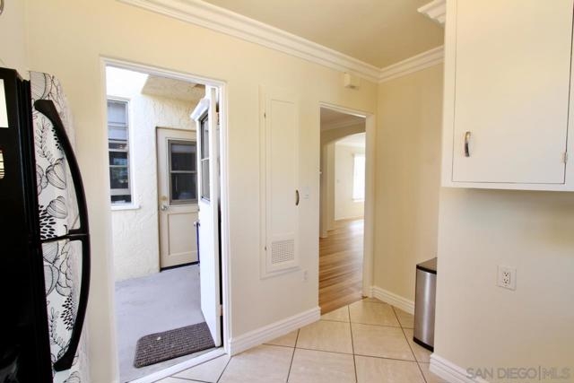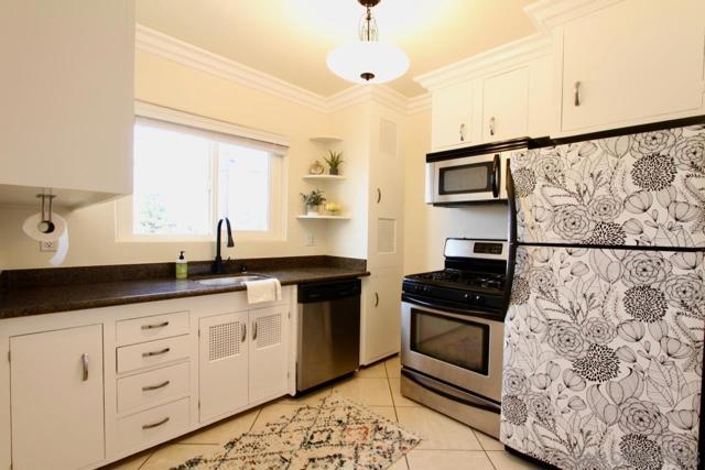 Discover timeless charm in this top-floor, end-unit condo tucked away in a 1939 Art Deco building that was converted to condominiums in 2006. This 1-bedroom, 1-bath residence offers 548 square feet of stylish living space infused with vintage character and modern updates. Original hardwood floors have been beautifully refinished, complementing freshly painted interiors, newly painted kitchen cabinets and updated hardware, and brand-new window blinds. Unique Art Deco details abound—from original doors and hardware to classic light fixtures and a decorative wall niche that nods to the building’s architectural heritage. The spacious layout feels bright and inviting, with generous storage throughout. As an end unit, it shares only one wall and enjoys wraparound exclusive-use outdoor space—perfect for relaxing or entertaining. Additional highlights include a private one-car garage accessed via the alley and free community laundry conveniently located just steps from the unit. Ideally situated within walking distance to Balboa Park, local shops, and restaurants, this condo blends historic allure with urban convenience in one exceptional home.