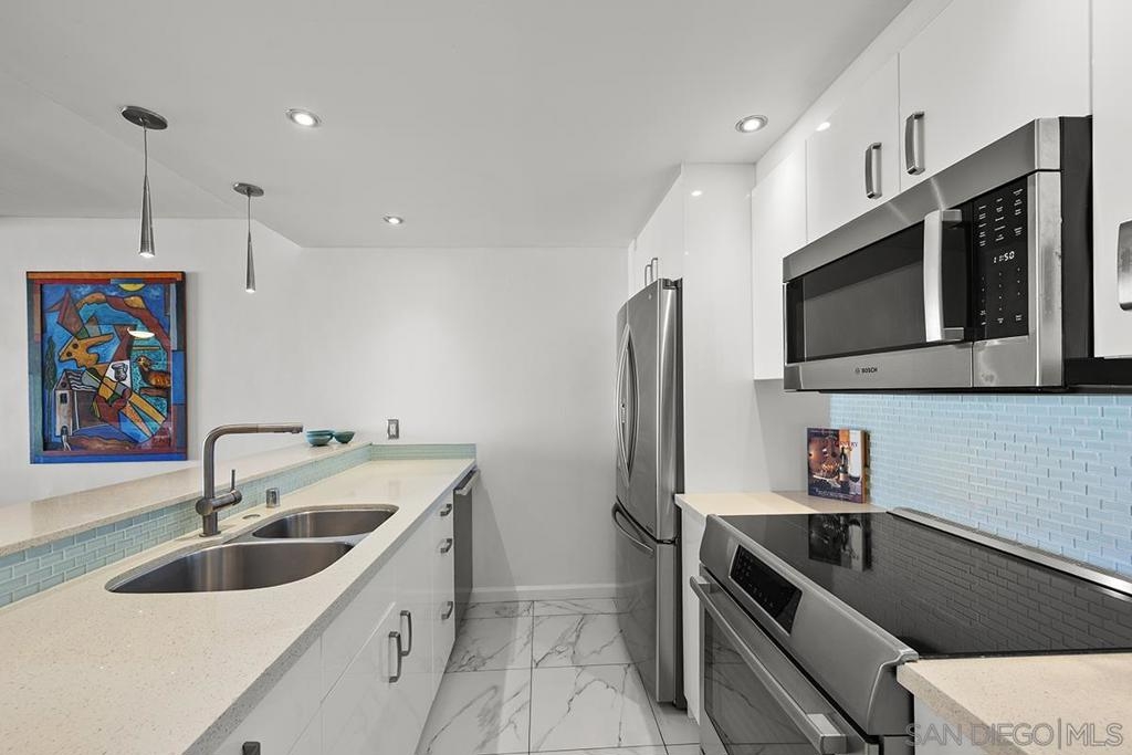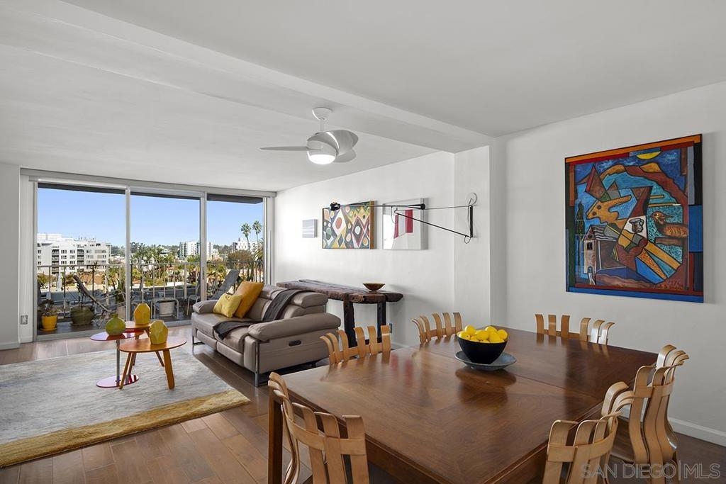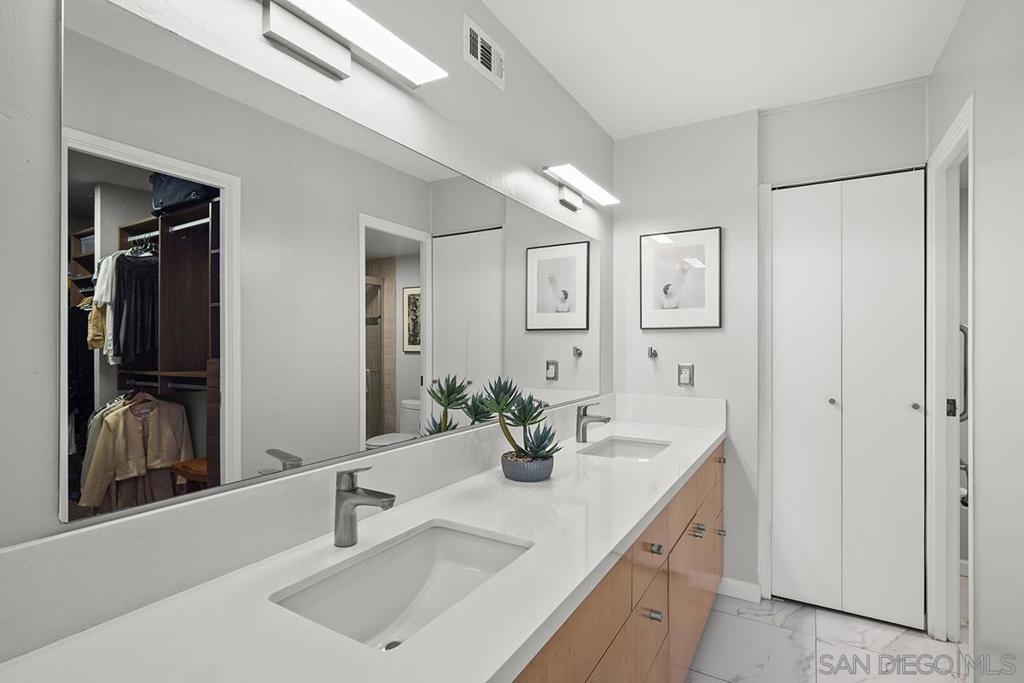 Embrace vibrant city living in this light-filled northwest-corner residence at Coral Tree Plaza, where airy spaces and modern style define everyday comfort. Sunlit and inviting, the expansive living area features sleek engineered wood flooring, custom built-ins, and seamless access to an oversized balcony—an ideal spot to entertain or simply savor San Diego’s signature climate and peaceful city views. The kitchen shines with quartz counters, subway-tile backsplash, contemporary white cabinetry, Bosch appliances, recessed and pendant lighting, a large pantry, and tile flooring. Originally a 3-bedroom layout, the generous bonus den/office currently is open to the living area now for an expansive great-room feel, yet easily re-enclosed should you wish to restore a true third bedroom. The primary suite includes a spacious custom walk-in closet, complemented by a convenient wall of built-ins concealed behind mirrored doors that catch and reflect the day’s sunset. The tastefully updated bath features quartz counters, dual vanities, thoughtfully designed cabinetry, and a walk-in shower. The guest bath offers a modern pedestal sink, stylish sconce lighting, a walk-in shower, and ample built-in storage. In addition to a dedicated laundry closet, you'll find a large utility closet offering even more storage. Other highlights include side-by-side parking near the elevator and a dedicated storage cage. Just moments from Balboa Park and some of Hillcrest's best establishments, this condo balances the comfort of a home retreat with the vibrancy of city life. As one of Hillcrest’s long-established residential communities, Coral Tree Plaza offers generous grounds and a well-maintained collection of amenities. Residents enjoy a swimming pool and spa, convenient on-site fitness room, and tennis court. The huge community club room, with its vintage-style fireplace, is an inviting spot for gatherings, ping pong, reading, and the like. The property also features beautiful landscaping, surface guest parking, guest suites, a beloved dog run, and comfortable lobby areas. A block and a half from the back gate, you’ll find yourself in Balboa Park. You’re just as likely to discover a favorite eatery to walk to. Enjoy easy access by car to Downtown, the airport, Mission Valley, and more. Coral Tree Plaza blends home-like comfort with a truly walkable urban lifestyle connected to the best of San Diego.