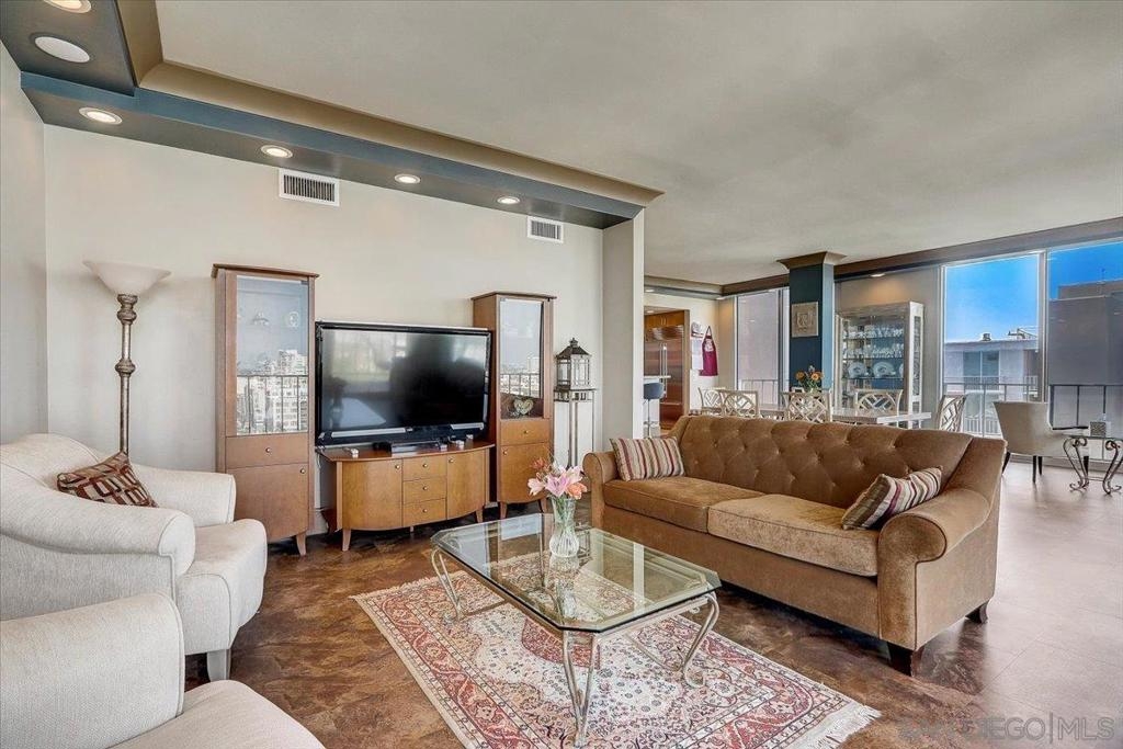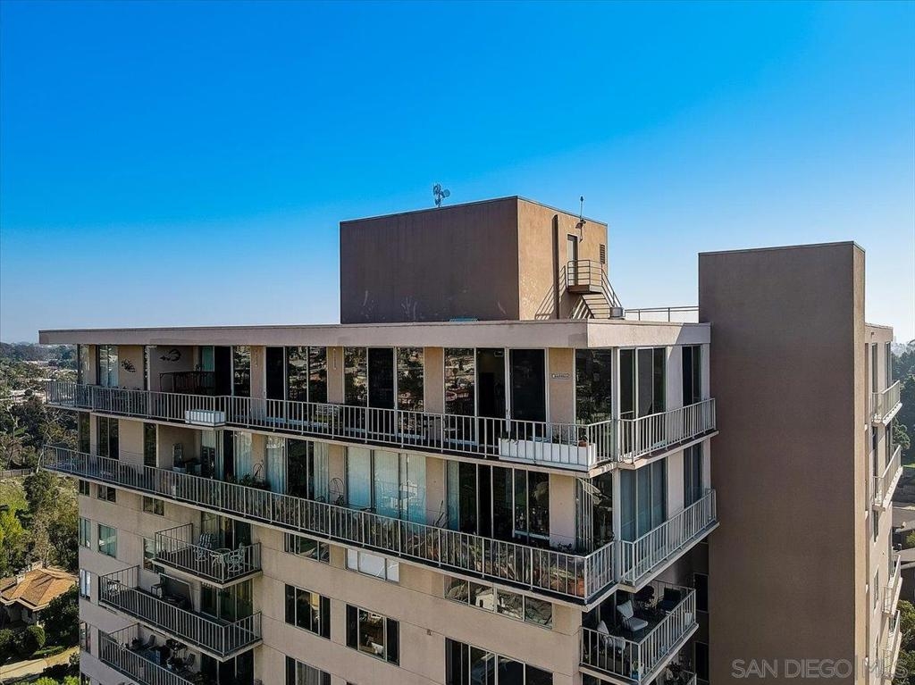 Views! Views! Views! Beautifully upgraded corner unit Penthouse located within the highly desirable gated community of Coral Tree Plaza in Hillcrest. This stunning property boasts a wide-open floor plan with neutral paint and trim, a new heater, new windows and sliding doors throughout, new motorized shades and blackout curtains, a laundry room, updated bathrooms, and high-end laminate flooring throughout. A beautifully appointed kitchen featuring granite countertops and backsplash, new stainless steel appliances including a Wolf induction cooktop, Miele dishwasher and Subzero refrigerator, and warm modern cabinetry with breakfast counter seating that opens to the living area. A large primary suite with tray ceilings, private balcony access and its own en-suite bathroom offering dual sinks, a custom walk-in shower, and a large walk-in closet. Outdoor living extends to the balcony where you can relax and unwind, taking in the views all the way to the Bay and Ocean. Parking is a breeze with two assigned side-by-side parking spots in the secure underground garage. There is an additional storage unit in the building. Unsurpassed community amenities include a sparkling pool and spa, recreation room, tennis courts, newly remodeled guest suites, an exercise room in the west building, a hobby room on the first floor of the garage, and a car wash bay. Centrally located in the heart of Hillcrest and only minutes away from Mission Valley, The San Diego Zoo, Balboa Park, shopping, dining, Interstates 163, 8 and the 5, plus so much more. Don’t let this opportunity pass you by! Complex Features: ,,,, Equipment: Dryer, Washer Sewer: Sewer Connected