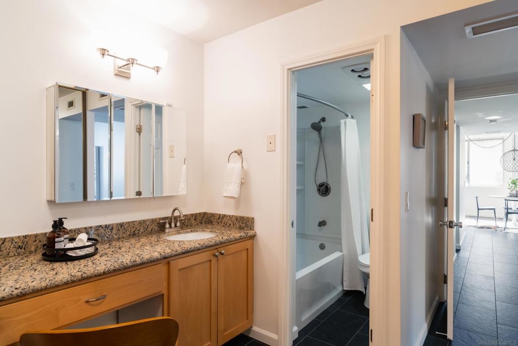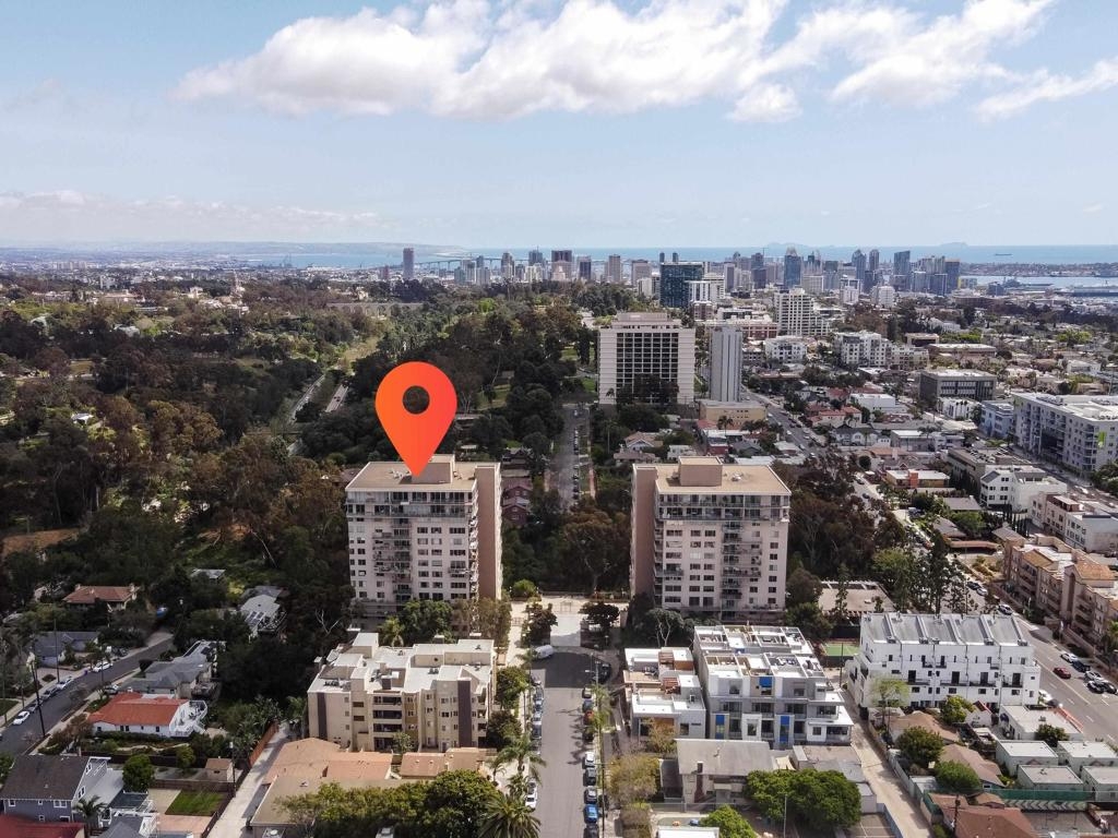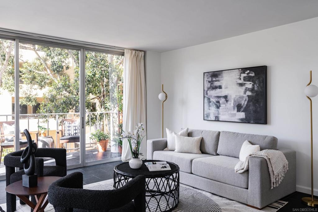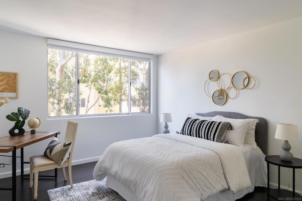 Located at the North West corner of historic Balboa Park, this sophisticated and spacious condo is a must see! Upon entering you are greeted by luxurious charcoal grey tile, updated kitchen with stainless steel appliances and a modern feel that draws you into the space. Light pours into the living room through dual sliding glass doors that lead out to an expansive wrap-around patio which is exclusive to only a handful of corner units in Coral Tree Plaza. Large bedrooms with hardwood floors allow for king sized beds and plenty of room for a workspace or lounging. Equipped with in-unit washer and dryer, central forced air and ample closet space make this home as comfortable as it is stylish. Included within the community you will find all the amenities you need to entertain and enjoy the San Diego sun with pool, spa, tennis court, gym, common room with pool table, kitchen, bike lockers, car wash and guest parking. HOA is professionally maintained with full time, on-site management, maintenance and cleaning staff. Situated at the end of a cul de sac and surrounded by mature trees this street is peaceful, quiet and traveled only by residents which provides a safe and clean atmosphere. A few steps out your front door and you are in the heart of vibrant Hillcrest offering incredible dining, shopping and nightlife. Just two blocks from Whole Foods and a short trip to the Hillcrest Farmers Market, San Diego Zoo, museums, and bordering neighborhoods North Park, Banker’s Hill and Mission Hills this neighborhood has it all. Come and see for yourself!