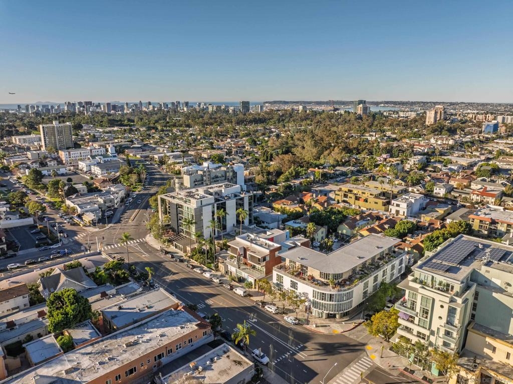 Welcome to The Cairo, located in Hillcrest’s historic Egyptian Quarter, where you are just steps from restaurants, nightlife, cafés, grocery stores, the weekly farmers market, and so much more. This top-floor end-unit penthouse stuns with natural light pouring through floor-to-ceiling windows with soaring 12-foot ceilings. Entertain effortlessly on the oversized private terrace just off the living room, featuring sweeping 180-degree views across Hillcrest. As an end unit with only one shared wall, the home offers enhanced privacy along with additional windows, larger bedrooms, and generously sized bathrooms. Tasteful upgrades include modern LED lighting throughout, solar-charging motorized shades, and custom California Closets with built-in dressers in both bedroom closets. Spacious interiors allow flexibility for a home office while the expansive primary bedroom functions as a true suite and comfortable retreat. As you explore the surrounding Egyptian Quarter, you’ll notice architectural nods to ancient Egypt—a homage to the Egyptian Revival and Art Nouveau influences that shaped the neighborhood in the 1920s—adding a rich layer of history and character to this iconic Hillcrest setting.