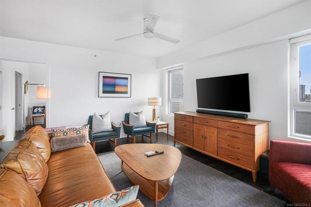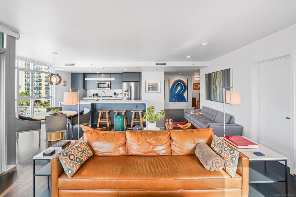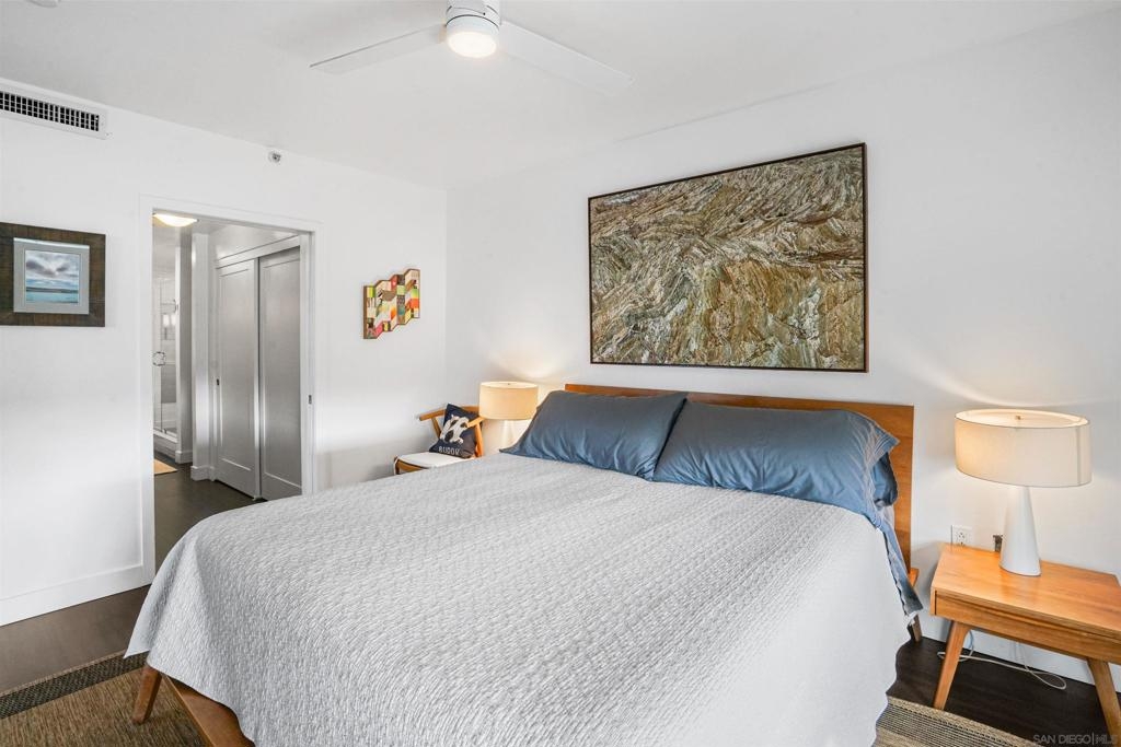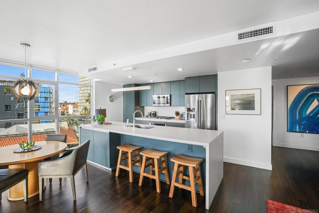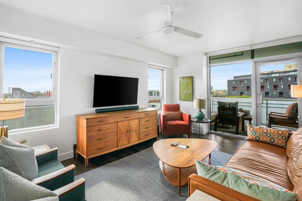 Stunning, recent remodel in the iconic Egyptian building! This reimagined corner unit offers panoramic northwest views toward Mt. Soledad, designer finishes, and a rare private patio. The interior showcases luxury vinyl tile throughout, Pedini cabinetry, KitchenAid appliances, a wine fridge, custom closets, and spa-inspired bathrooms. Additional highlights include Google Fiber readiness, 2 parking spaces with an EV charger, a large storage unit, and unbeatable walkable access to Hillcrest, Balboa Park, and more! Located in the heart of Hillcrest, this fully upgraded residence combines sophisticated design with everyday functionality. The sleek kitchen boasts Italian Pedini cabinets, a large waterfall island, pull-out pantry, Ferguson fixtures, and tucked outlets—all complemented by premium KitchenAid appliances and a built-in wine fridge. Floor-to-ceiling windows flood the open-concept living space with light and connect to a spacious private patio with elevated city views. The bathrooms are bright and serene, featuring white subway tile, upgraded lighting, Bluetooth speakers, and recessed niches. Additional upgrades include solid-core interior doors, Preston custom closets, under-cabinet lighting, dimmable recessed lights, a new laundry machine, and fully redone electrical throughout. Enjoy high-speed Google Fiber readiness, a private storage unit, and two garage parking spaces with an EV charger. Ideally situated near University Ave. and Park Blvd., you're steps from Hillcrest Farmers Market, the San Diego Zoo, Balboa Park, and endless dining options. With easy access to North Park, University Heights, Downtown, and the airport—this location truly connects you to it all.