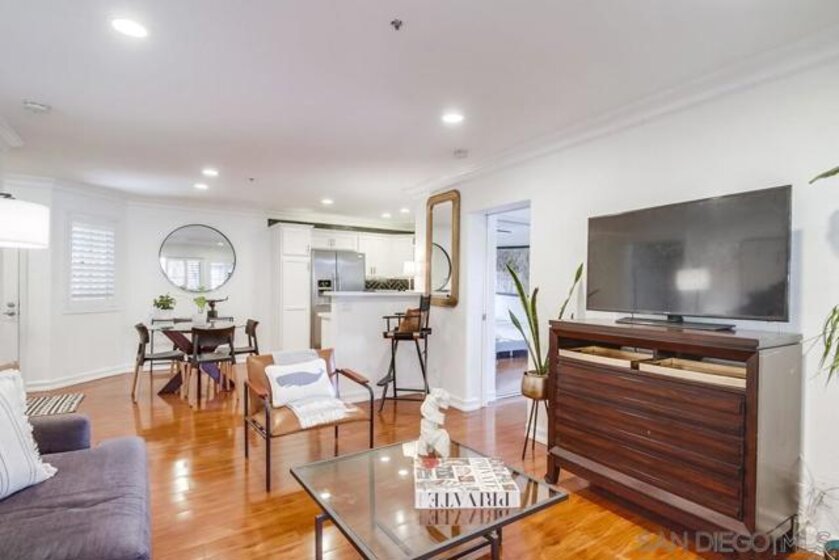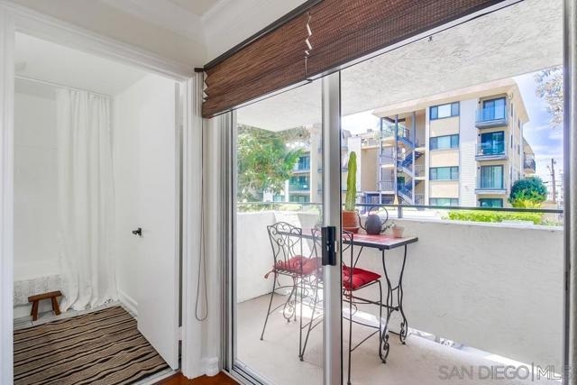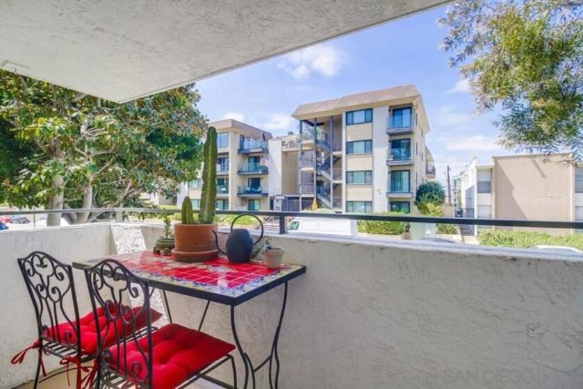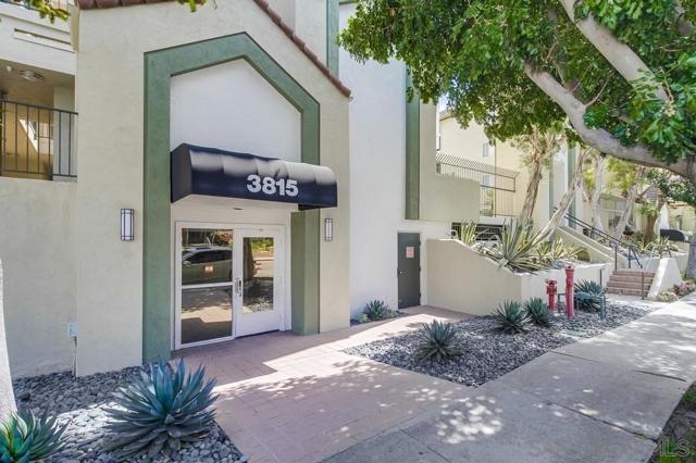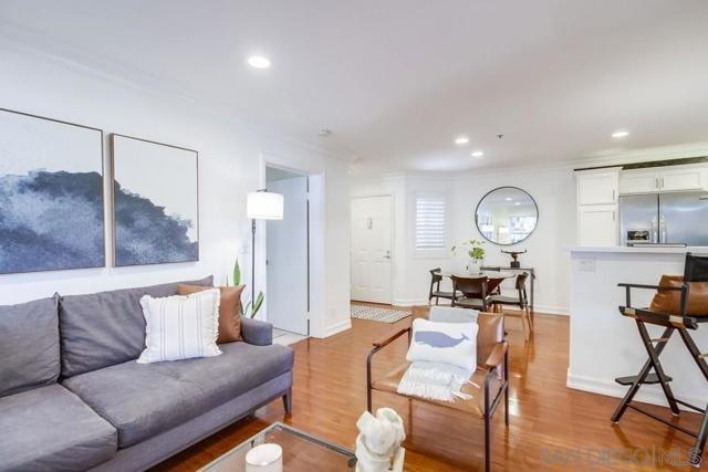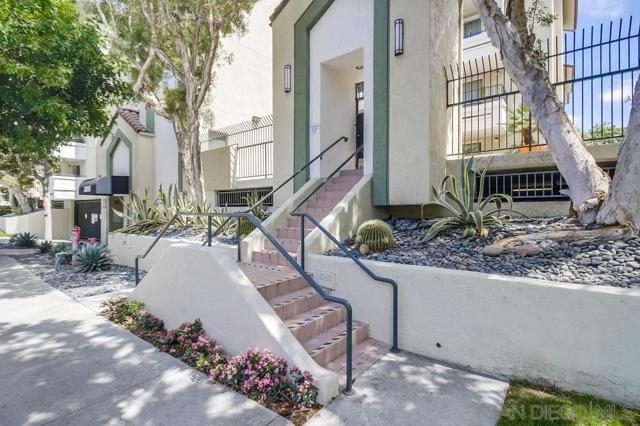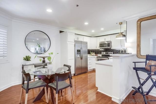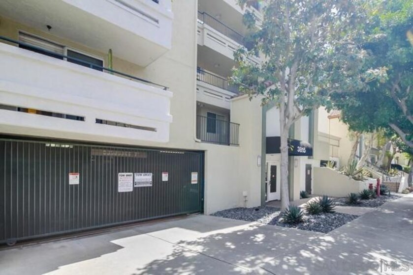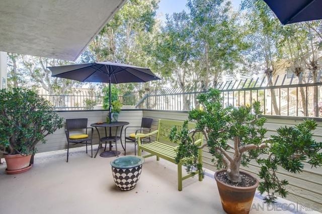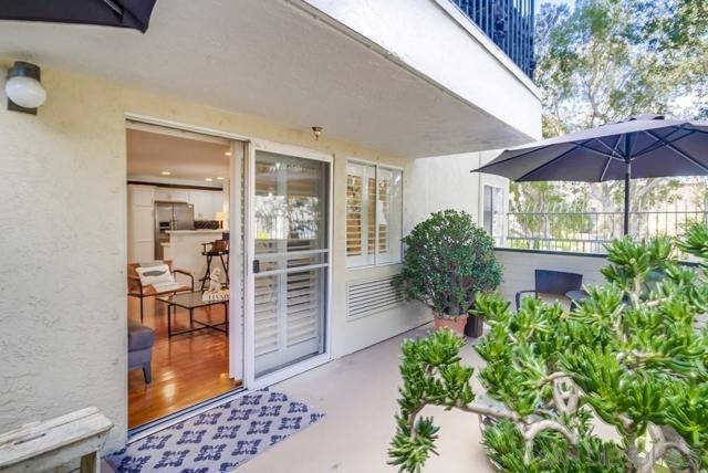 Step into this exquisite turn-key 2-bedroom, 2-bathroom corner unit, meticulously designed to perfection! Discover crown molding gracing every corner, bespoke shutters adding charm, and stunning flooring enhancing the ambiance. The expansive open kitchen boasts custom cabinets and modern appliances, making it a culinary dream. With a split master layout, each master suite presents spacious bathrooms and ample closet space for your convenience.Enjoy not one but two outdoor areas; the main patio alone spans nearly 200 sqft, ideal for relishing our enviable weather. Your laundry room is conveniently located just outside the unit, adding to the ease of living. Parking is a breeze with two assigned garage spaces and two additional storage units, ensuring you have ample space for all your belongings. This property offers everything you need to thrive and embrace the vibrant lifestyle that Hillcrest has to offer.
