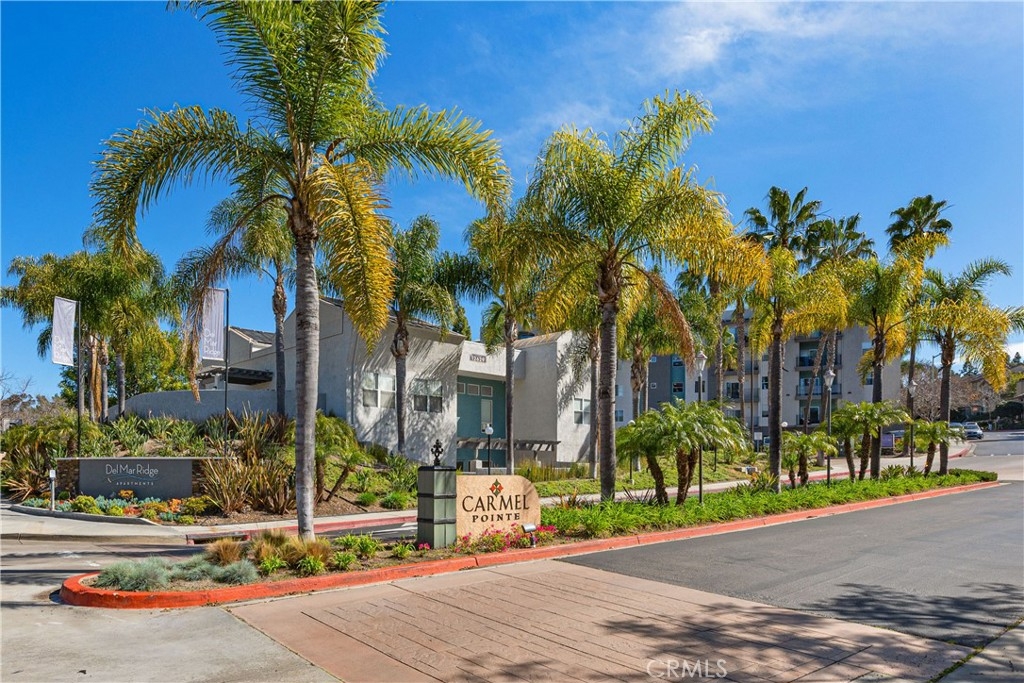 Amazing opportunity to live minutes from georgeous Del Mar Beaches!! Location, Location, Location!! This Upper level condo Offers 1 Bedroom and 1 Bath located at the Charming Carmel Pointe in the heart of Carmel Valley!! pride ownership offers upgraded and ready for a new family to enjoy, Spacious Balcony with views to tress and Hills with the convinence of walking distance to Del Mar Highlands shopping Center, fitness center, & Club House. Resort style amenities include sparking pool, perfect for cooling down during an unexpected heat wave, BBQ area, access to walking trails. Award winnings Top ranking schools, just minutes to One Paseo Del Mar Highlands, and commuter friendly with access to highway 56 and the 5 Freeway. Unit is located on 2nd. Floor with 1 Parking space.