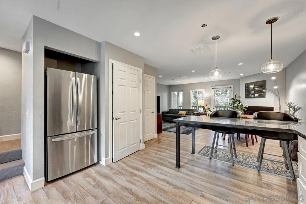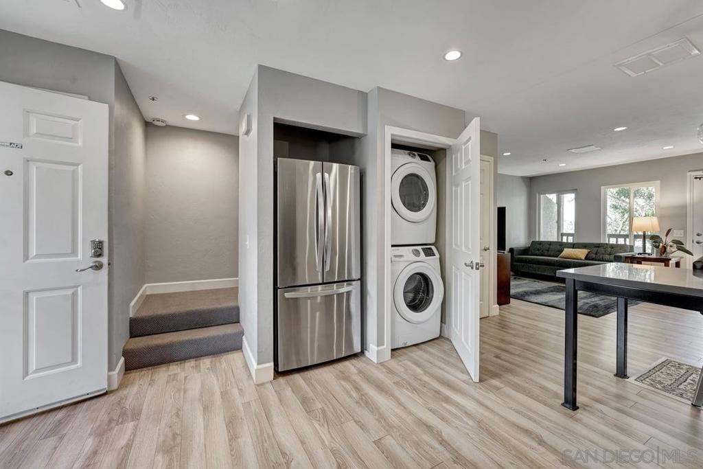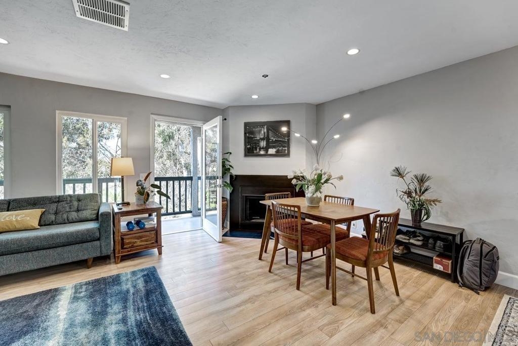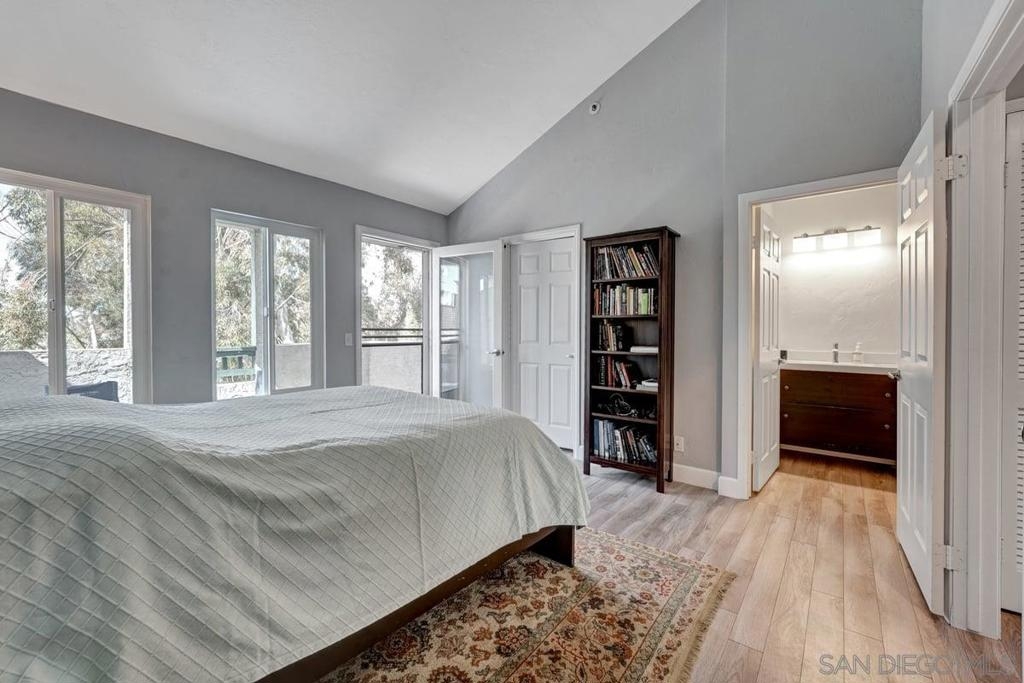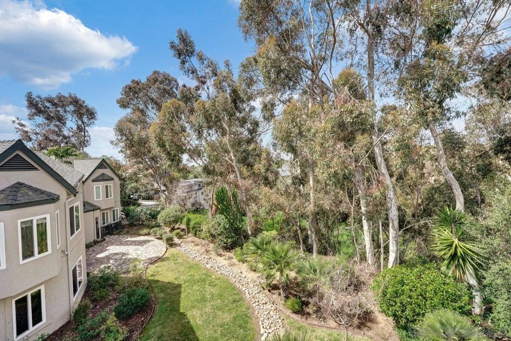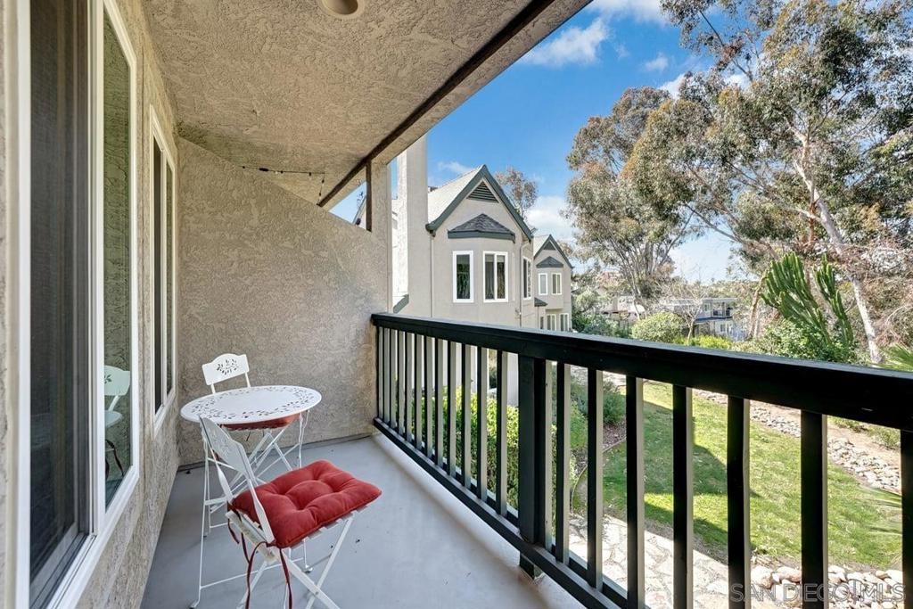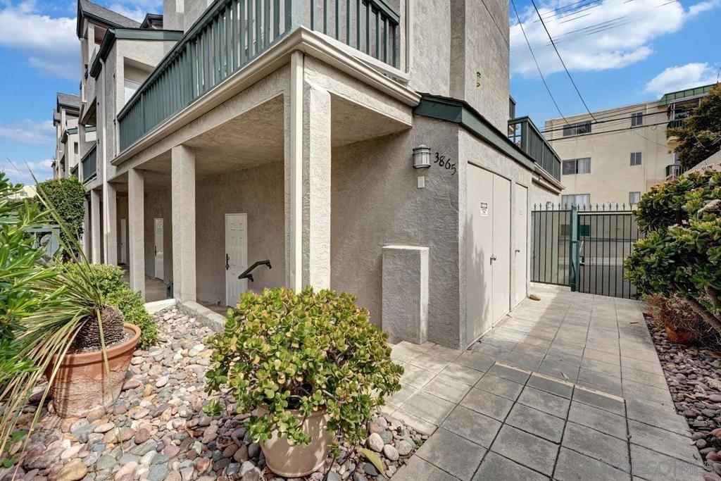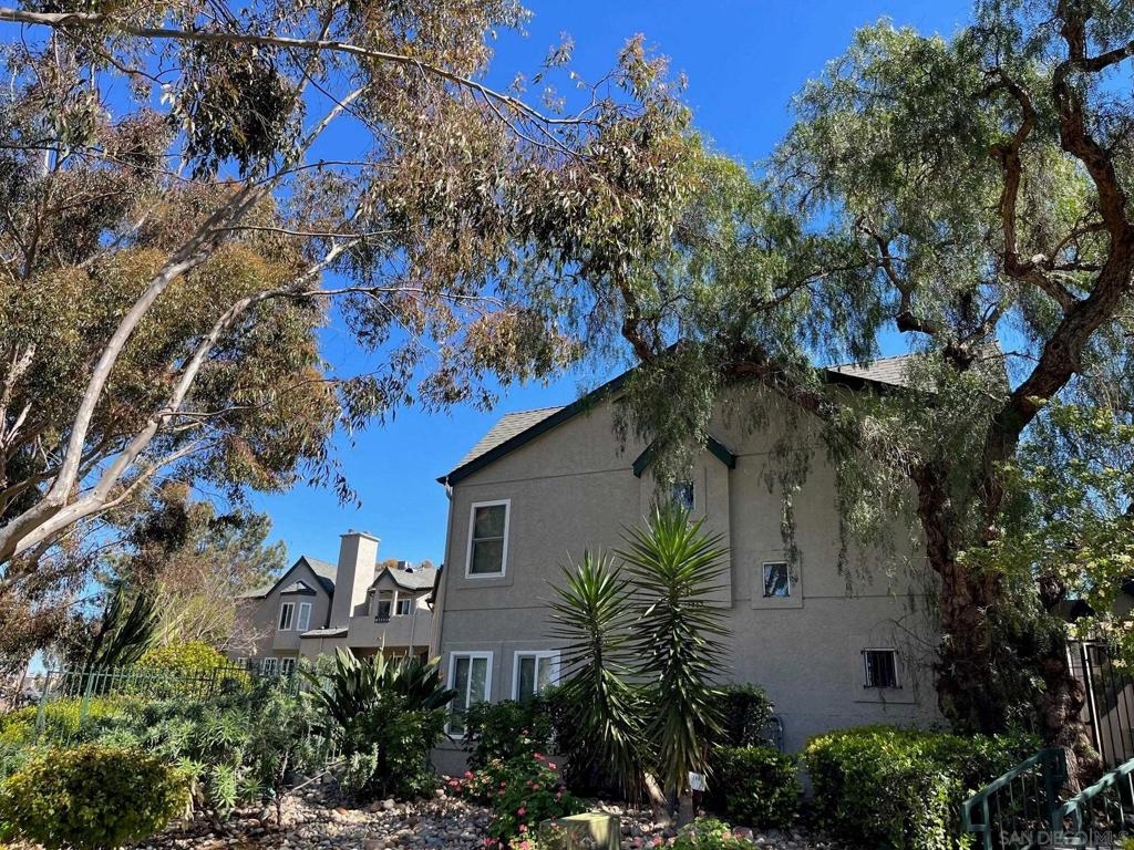 EUCALYPTUS PARK TOWNHOME - Great opportunity to live at the end of a quiet cul-de-sac, nestled on a canyon filled with Eucalyptus trees, while being close to all that Mission Hills/Hillcrest has to offer! Downstairs includes an open concept floorplan with kitchen, dining area, living room, west-facing balcony overlooking the canyon, and conveniently located half-bath and in-unit laundry stack. Upstairs features dual master bedroom suites with cathedral ceilings, each with their own bathroom. One bedroom offers a walk-in closet and west-facing balcony, while the other has its own private entrance and two closets. There is laminate flooring throughout and there have been numerous updates from 2018-2022, including kitchen, fridge, hot water heater, both shower stalls, stairway carpeting, painting, Milgard windows, and sprinkler system heads. fridge, hot water heater, both shower stalls, stairway carpeting, painting, Milgard windows, and sprinkler system heads. The unit includes a dedicated, private tandem garage with extra room for storage. The complex has 11 units, is fully gated and abuts a path that leads directly from the rear alleyway to University Ave for quick access to grocery stores, restaurants, coffee houses, etc.