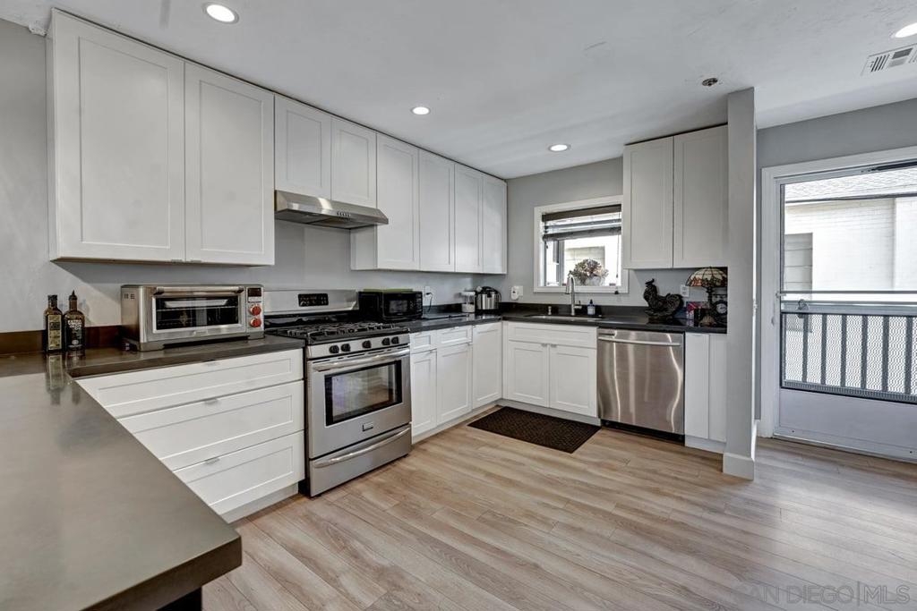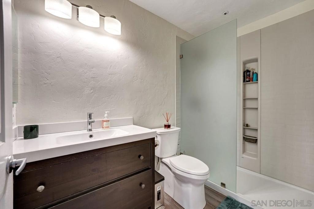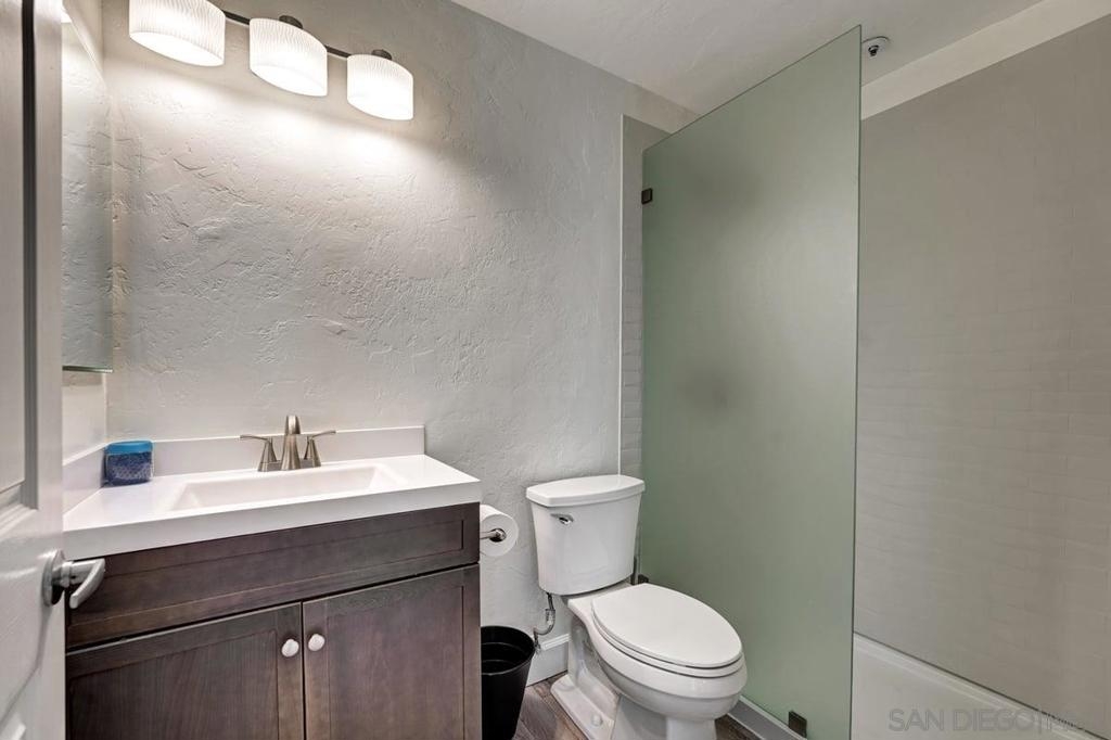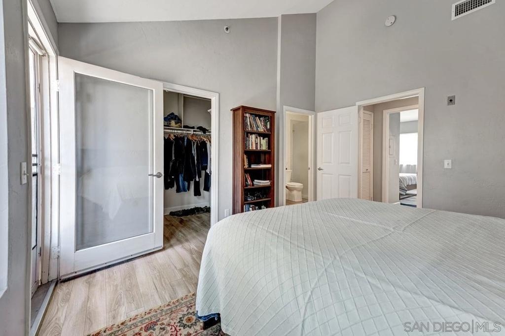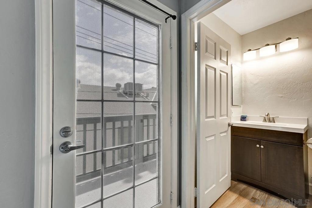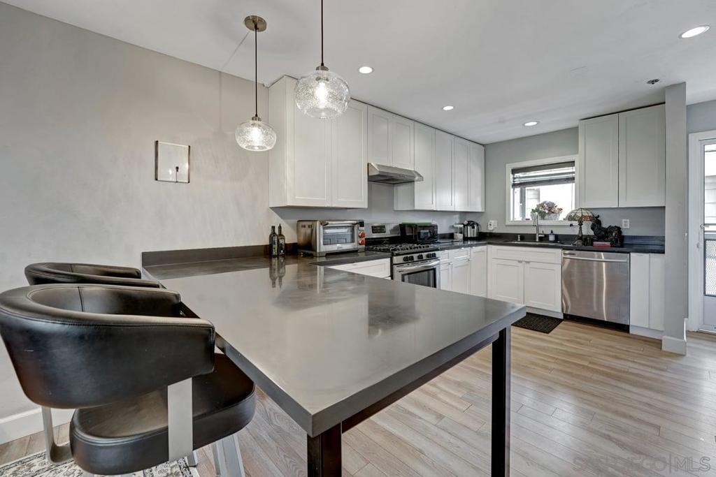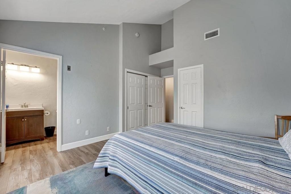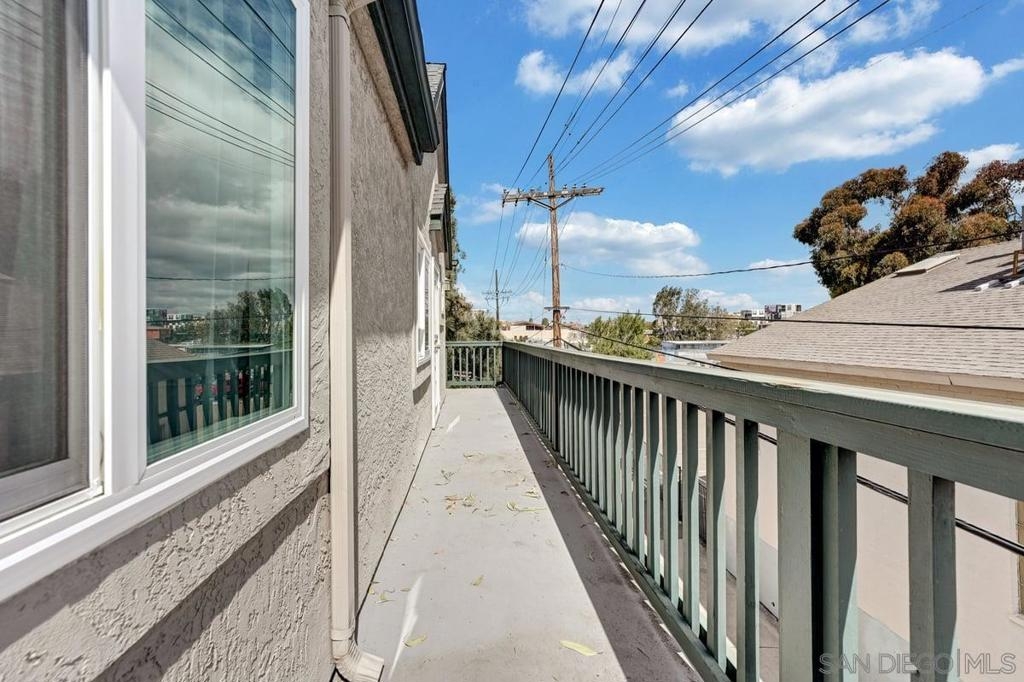 EUCALYPTUS PARK TOWNHOME - Great opportunity to live at the end of a quiet cul-de-sac, nestled on a canyon filled with Eucalyptus trees, while being close to all that Mission Hills/Hillcrest has to offer! Downstairs includes an open concept floorplan with kitchen, dining area, living room, west-facing balcony overlooking the canyon, and conveniently located half-bath and in-unit laundry stack. Upstairs features dual master bedroom suites with cathedral ceilings, each with their own bathroom. One bedroom offers a walk-in closet and west-facing balcony, while the other has its own private entrance and two closets. There is laminate flooring throughout and there have been numerous updates from 2018-2022, including kitchen, fridge, hot water heater, both shower stalls, stairway carpeting, painting, Milgard windows, and sprinkler system heads. fridge, hot water heater, both shower stalls, stairway carpeting, painting, Milgard windows, and sprinkler system heads. The unit includes a dedicated, private tandem garage with extra room for storage. The complex has 11 units, is fully gated and abuts a path that leads directly from the rear alleyway to University Ave for quick access to grocery stores, restaurants, coffee houses, etc.