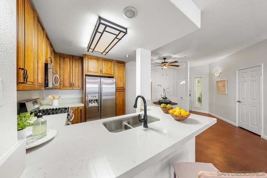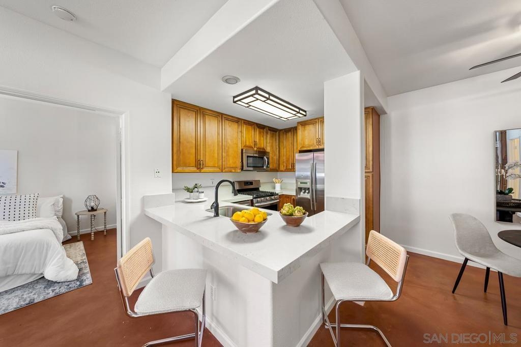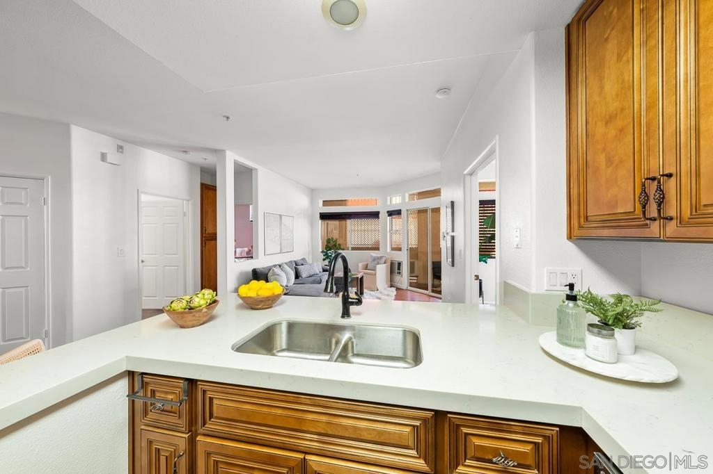 Seller will entertain offers from $550,000 - $575,000...Welcome to Uptown Court! VA Approved complex! This rarely available condo is perfectly situated in Hillcrest and just a few blocks from North Park! This is a ground floor unit with 2 bedrooms opposite from one another for privacy, 2 full baths, and tucked away in the corner of the complex. There is a spacious patio with direct access to one of the bedrooms and living room. Home features an open floor plan with a recently remodeled kitchen including modern countertops, cherrywood cabinets and stainless steel appliances. Upgraded vanities in both bathrooms, concrete stained floors, and new paint throughout make this home feel modern and fresh. Complex is gated and has tandem underground parking with extra storage, and guest parking in the alley. All within walking distance are Hillcrest Brewing Co, a weekly Farmers Market, shops, dining, nightlife and more! This is a great opportunity to own a home in one of the best locations in metro San Diego! Anticipated to be complete in 2025... The Normal Street Promenade will accommodate the weekly Hillcrest Farmers Market as well as other treasured events, such as the San Diego Pride Festival and Parade. The promenade will provide ample space for new community events, such as movies or concerts, art events, and additional space for street fairs Sewer: Public Sewer Topography: LL