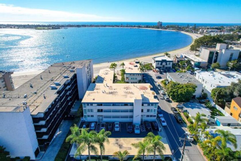 Welcome to Riviera Shores on Sail Bay, where waterfront tranquility meets the best of Pacific Beach living. This rare ground-floor 3BR/2BA condo is just steps from the sand and offers the ease of single-level living with no interior stairs. Bright corner windows frame beautiful bay views from the living and dining areas, while the spacious layout includes an updated kitchen, new LVP flooring, dual-pane windows and sliders, a generous primary suite, and two tastefully remodeled bathrooms with walk-in showers. The oversized covered patio creates seamless indoor-outdoor living and a front-row seat to the Sail Bay lifestyle. Residents enjoy a sparkling community pool, covered parking, in-unit laundry, and direct access to the scenic boardwalk stretching around the bay toward Crown Point and beyond. A rare chance to own a spacious bayfront home in one of Pacific Beach’s most desirable settings.